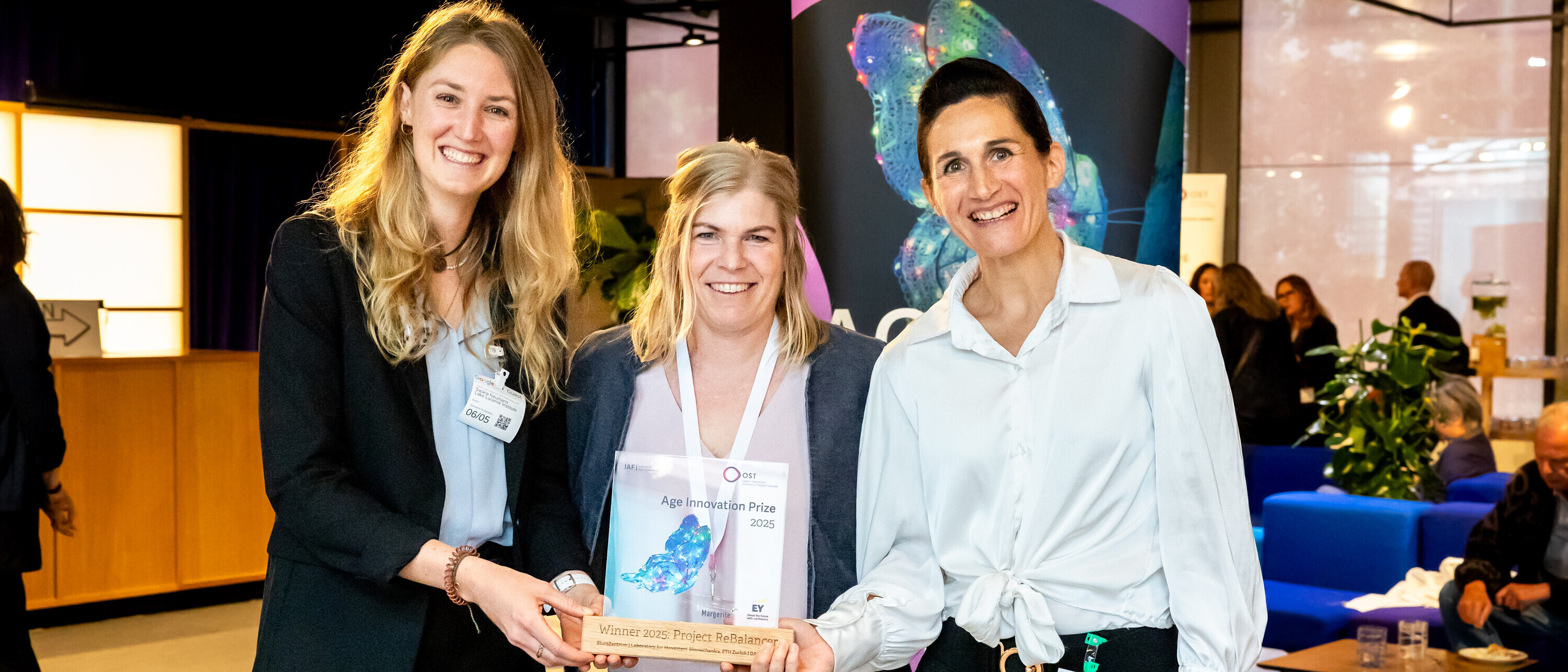Der schweizweite Wettbewerb um den Age Innovation Prize wurde zum dritten Mal vom IAF Institut für Altersforschung der OST zusammen mit dem AgeTech-Beratungsunternehmen Margerite und dem Wirtschaftsprüfungs- und Beratungsunternehmen EY Schweiz organisiert. Gewonnen haben die drei Projekte «FoodScanner» der Nutrai GmbH, «AiMorphous» der AiMorphous Health AG und «Project ReBalancer» des SturzZentrums Schweiz, der ETH Zürich und des DART@LLUI.