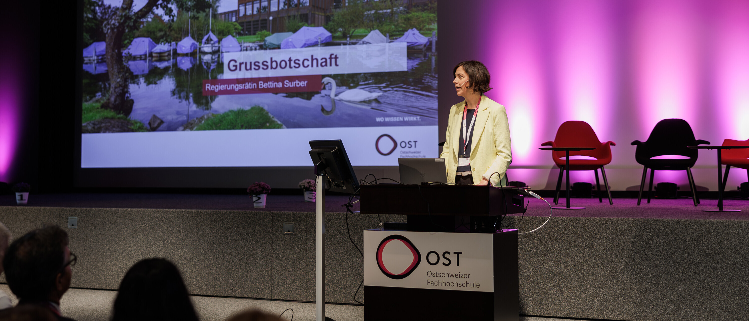Unterstützung erhielt die OST auch aus der Politik: Die St.Galler Regierungsrätin Bettina Surber betonte in ihrer Grussbotschaft die Innovationskraft der Hochschule und sicherte ihr die Unterstützung des Kantons St.Gallen zu. Sie unterstrich die Rolle der OST als Impulsgeberin für die Ostschweiz.