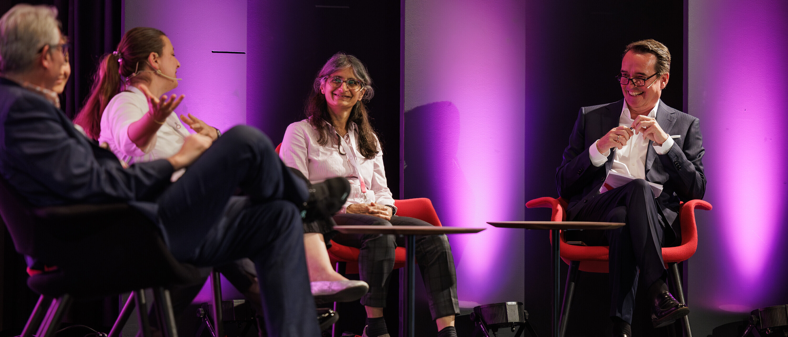 Die beiden Podiumsdiskussionen unter der Leitung von SRF-Journalist Florian Inhauser spannten den Bogen von technischer Innovation zu ethischen Fragen. Diskutiert wurde unter anderem, wie KI in Bildungs- und Gesundheitsbereichen fair eingesetzt, persönliche Daten geschützt und soziale Teilhabe verbessert werden können.