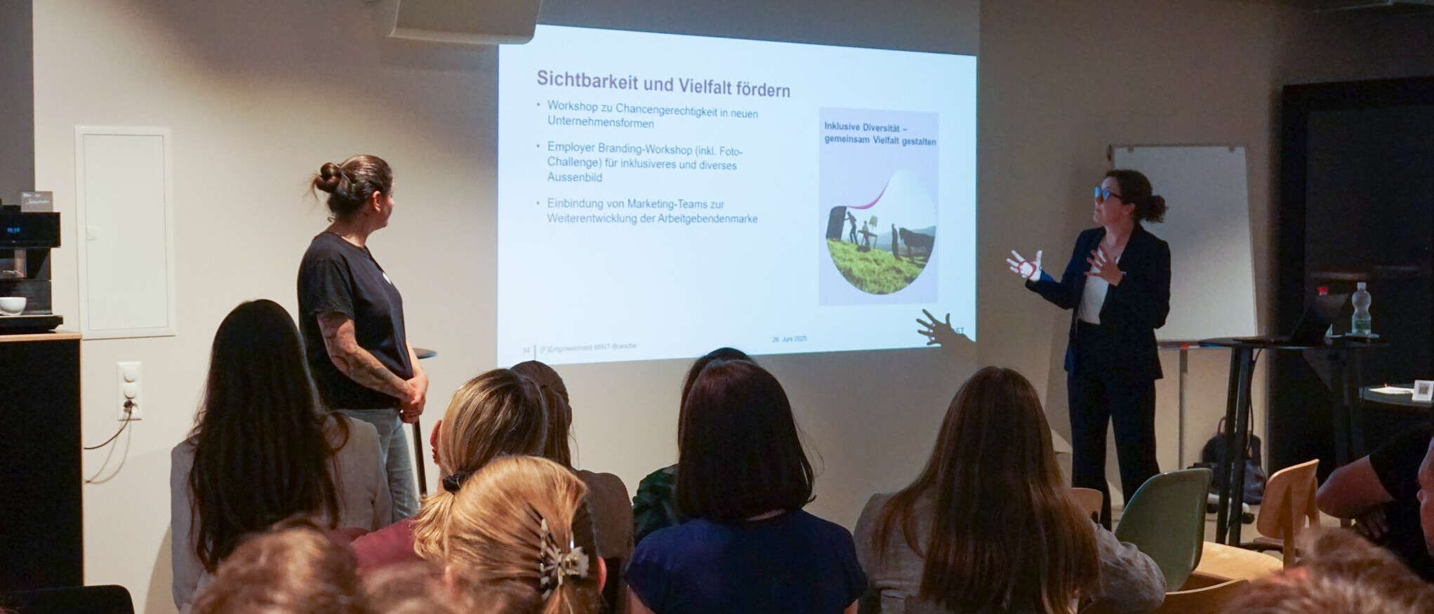 Die Erkenntnisse aus der Umfrage und den Interviews wurden mit dem Ist-Zustand der beteiligten Unternehmen verglichen. Daraus entstanden Empfehlungen und konkrete Massnahmen. Eine zentrale Erkenntnis: Der Umgangston in technischen Abteilungen kann für Frauen abschreckend wirken. In Workshops mit dem ikik Institut für Kommunikation und interkulturelle Kompetenz der OST reflektierten Mitarbeitende aller Stufen ihr Kommunikationsverhalten. In einem der Unternehmen bildete sich daraus eine Arbeitsgruppe, die einen Leitfaden für einen wertschätzenden Umgang erstellt. Weitere Workshops thematisierten unter anderem Chancengerechtigkeit, Machtverhältnisse und Inklusion im Employer Branding. Auch Führung und Unternehmenskultur wurden kritisch hinterfragt.