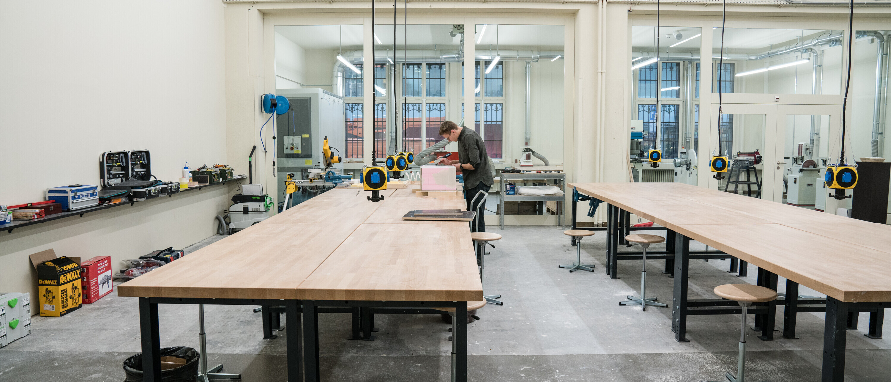 Bei der Arbeit in den Werkstätten steht die Auseinandersetzung mit den unterschiedlichen (Bau-)Materialien und deren Fügung im Zentrum. Die praktische Umsetzung von Übungen und Entwürfen in den Werkstätten ermöglicht es Ihnen, Erlerntes zu begreifen. Sie lernen, Maschinen und Verfahren für die Bearbeitung der unterschiedlichen Materialien anzuwenden und werden für die Nutzung der professionell ausgestatteten Werkstätten geschult, sowie von den Dozierenden bei Ihren Arbeiten begleitet.