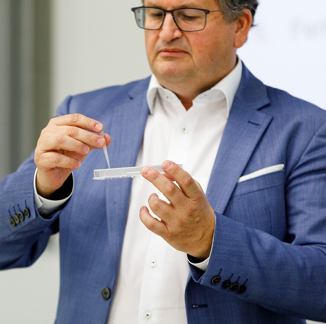 Die an der OST im Rahmen des von Innosuisse geförderten Projekts neu entwickelten Pipettenspitzen schafften bei Dosier-Tests Kleinstmengen von weniger als 100 Nanolitern. Zum Vergleich: 1 Liter entspricht einer Milliarde Nanoliter. Die OST hat bereits rund 20'000 Stück der neuen Pipettenspitzen für Vorversuche produziert.