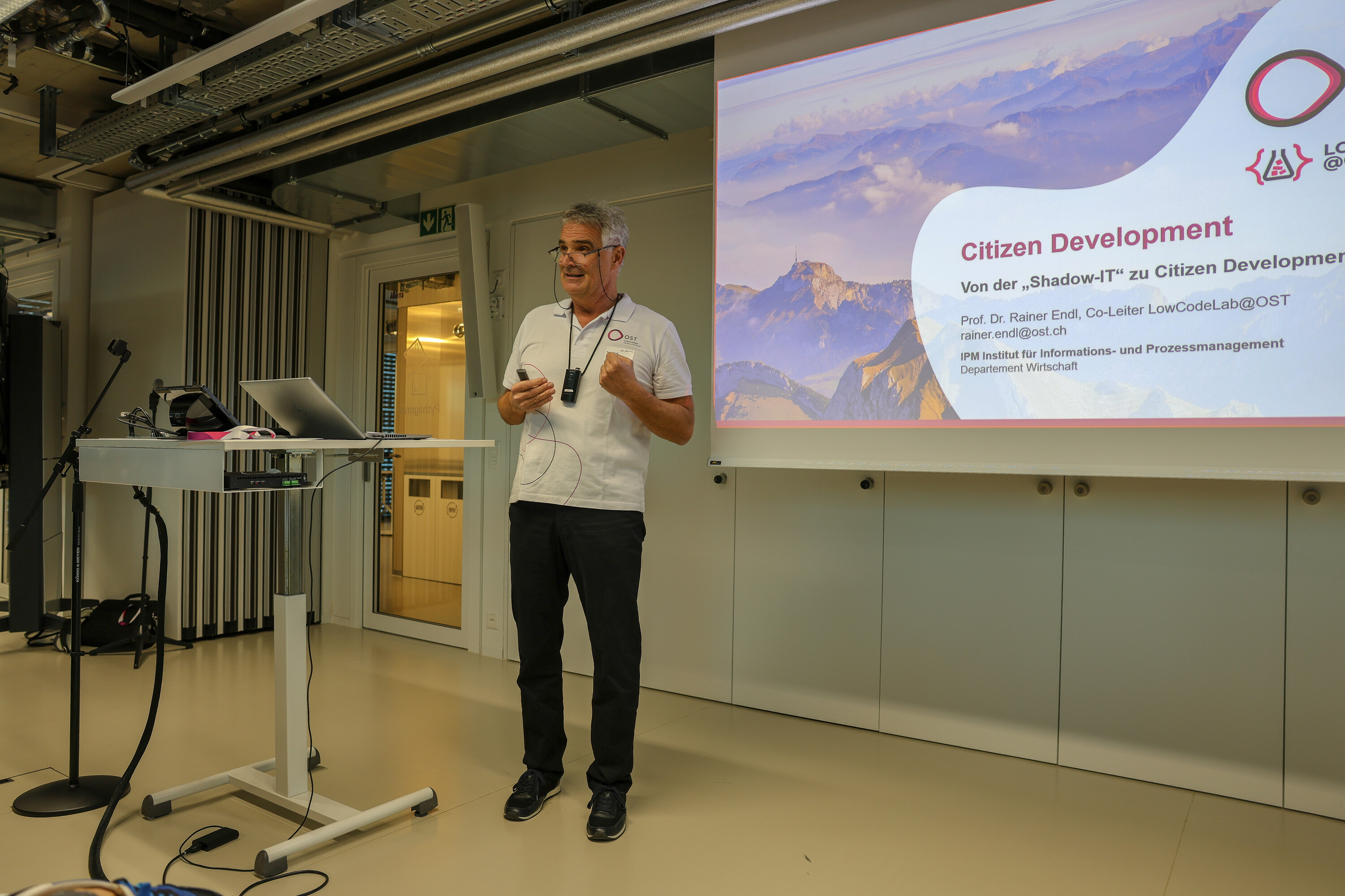 Das Kompetenzzentrum LowCodeLab@OST am Institut für Informations- und Prozessmanagement veranstaltete kürzlich den ersten Swiss Low Code Day. Im Mittelpunkt der Tagung stand die Frage, wie und unter welchen Voraussetzungen Low Code und Citizen Development die Digitalisierung beschleunigen können. Der gemeinsam mit dem Institut für Wirtschaftsinformatik der Universität St.Gallen in Zürich durchgeführte Anlass war mit über 170 Teilnehmenden bis auf den letzten Platz ausgebucht, die Vorträge mussten deshalb in einen zweiten Hörsaal per Video übertragen werden. Das grosse Interesse verwundere ihn nicht, sagte Philipp Ebel, Leiter des Kompetenzzentrums Cognitive Automation an der Universität St.Gallen und Mitorganisator des Low Code Days: «Low Code und Citizen Development bergen grosses Potenzial, die Digitalisierung weiter zu beschleunigen.»