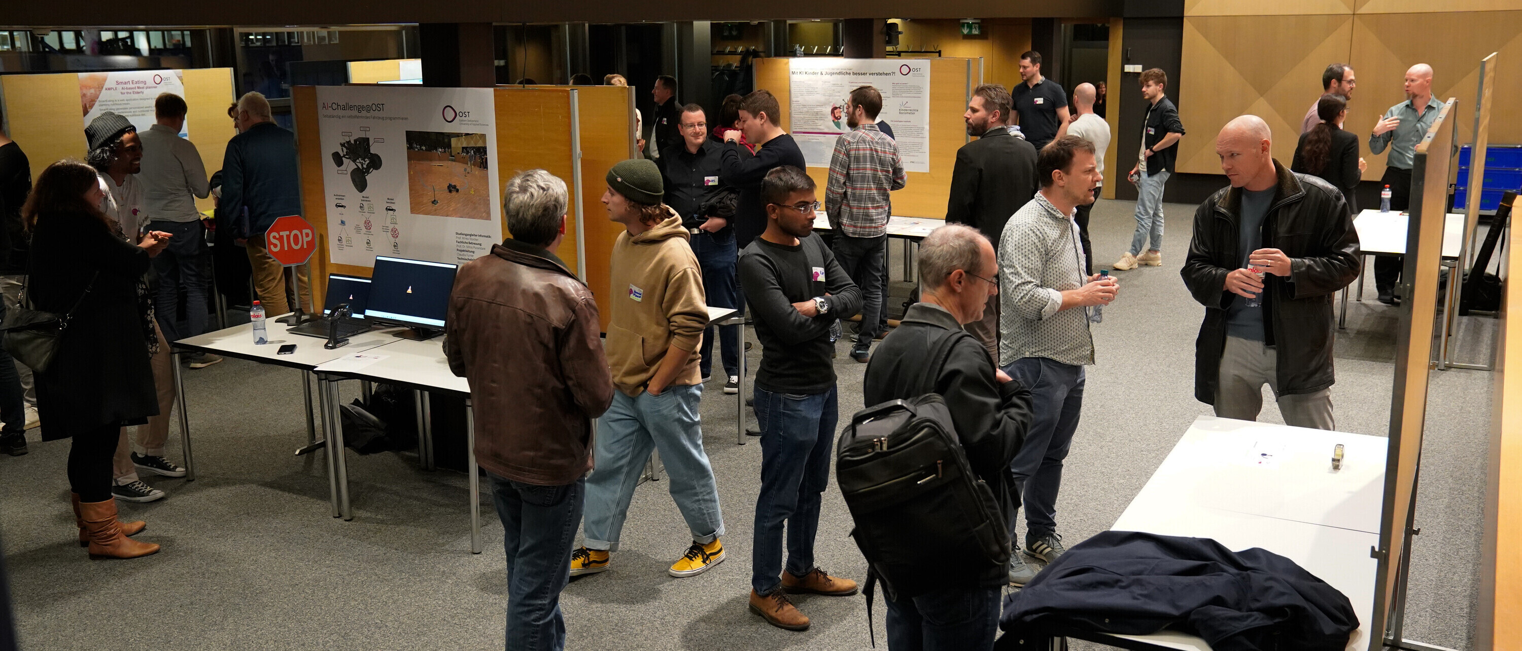 Künstliche Intelligenz (KI) kann mehr als Texte schreiben, das Internet durchsuchen und Bilder generieren. Das wissen auch Unternehmen, sie investieren zunehmend in KI-Lösungen, die praktische Herausforderungen bewältigen können. Eine Auswahl von 17 besonders spannenden Projekten aus der Praxis wurde diese Woche bei der «AI@OST-Tagung» an der OST präsentiert. Nach den Kurzvorstellungen der Projekte wurde das Publikum als Jury eingesetzt. Als Gewinnerprojekt konnte sich eine Semesterarbeit aus der Elektrotechnik durchsetzen: Eine künstliche Intelligenz, die Hochleistungssportlern wie den Rapperswil-Jona Lakers dabei hilft, durch gezieltes Mental- und Körpertraining unter Druck schnellere und bessere Entscheidungen zu treffen.