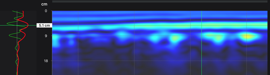 Im schwimmenden Estrich eines Gewerbegebäudes sind nach kurzer Nutzungszeit Risse aufgetreten. Im Rahmen der Erhebung der Schadenursachen wurden die relevanten Einflussgrössen Schichtdicke und Materialqualität untersucht. Die Estrichstärke wurde auf mehreren Messlinien mit Georadar aufgenommen und mittels einzelner Bohrkerne kalibriert. Beim Material wurde die Druck- und Haftzugfestigkeit bestimmt.