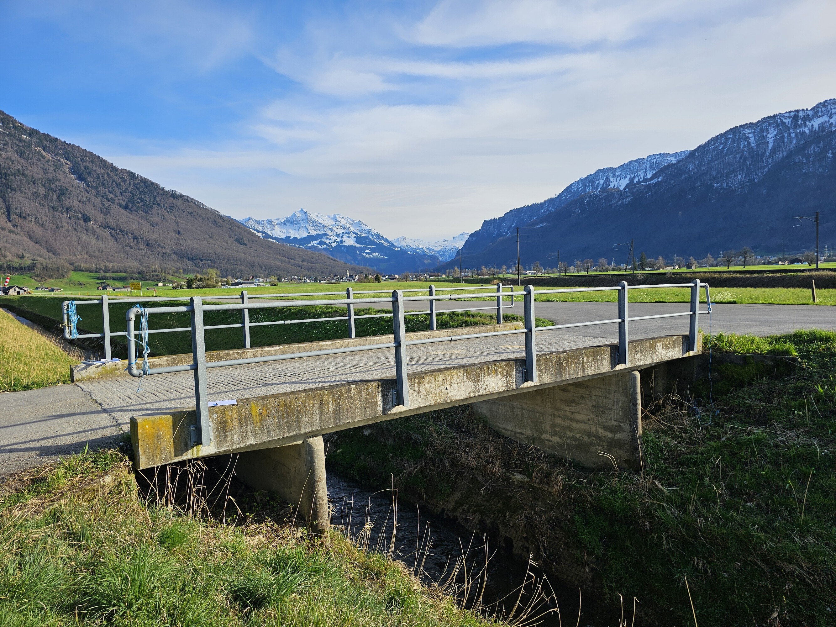 Bei der knapp 10 m langen Brücke wurde eine Zustandsuntersuchung und eine Tragwerksanalyse durchgeführt. Für die Beurteilung wichtig sind neben der Betonqualität der Korrosionszustand der Bewehrung und deren Überdeckung. Dank einer ausreichenden Einbettung des Stahls und der geringen Tausalzanwendung befindet sich das Bauwerk mit Ausnahme von lokalen Mängeln in einem guten Zustand. Hingegen muss die Brückenplatte verstärkt werden. Die erforderlichen Massnahmen werden voraussichtlich im Jahre 2025 umgesetzt.