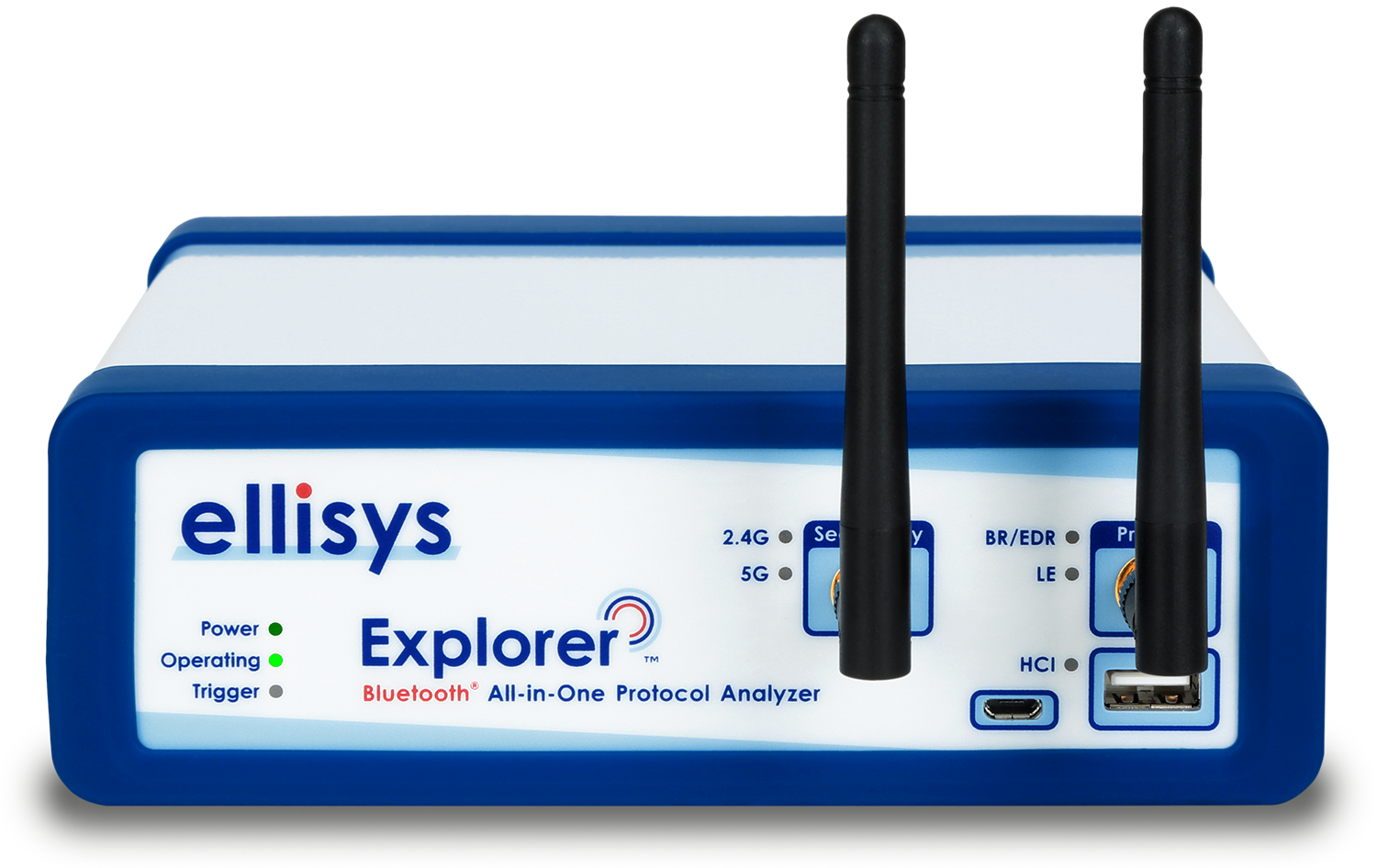 Der Ellisys Bluetooth Explorer 400 ist ein All-in-One-Analysetool, das gleichzeitig Bluetooth BR/EDR, Low Energy, Wi-Fi 802.11 a/b/g/n, 2,4-GHz-Spektrum, HCI (USB, UART, SPI), WCI-2, logische Signale, generische I2C/UART/SPI/SWD und Audio I2S erfassen kann.