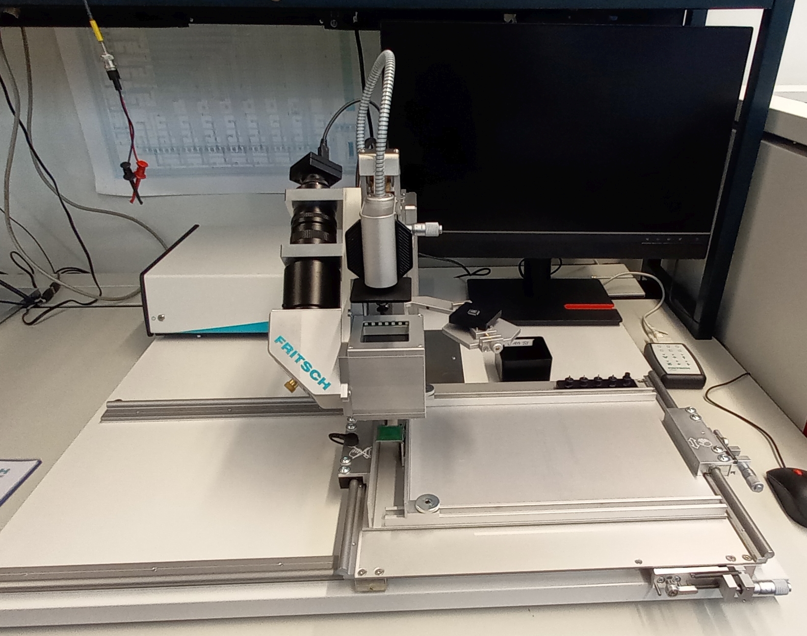 Der Fritsch MP904 ist ein manueller Bestückungsautomat zur präzisen Platzierung von SMD-Bauteilen. Der stabile Aufbau des Handlingkopfes ermöglicht eine hochpräzise Bestückung von BGA- und Fine-Pitch-Bauteilen. Das spezielle Visionsystem ermöglicht die Darstellung von zwei Ebenen in einer Ansicht. Sowohl die Leiterplatte als auch die Unterseite der Bauteile können gleichzeitig betrachtet werden. Über einen Feinjustiertisch werden beide Darstellungen mittels Mikrometerschrauben zur Deckung gebracht. Dadurch ist eine einfache und exakte Platzierung der Bauteile gewährleistet.