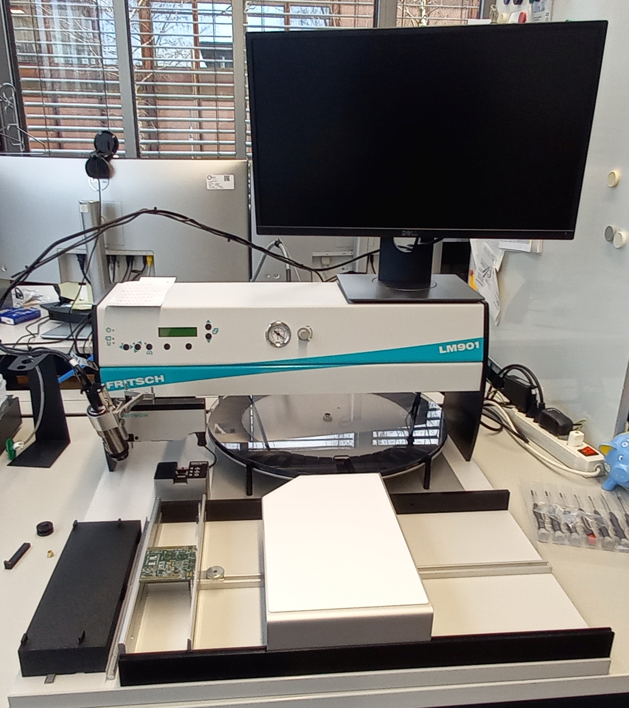 Der Fritsch LM901 ist ein manuelles Pick-and-Place-System für Prototypen und Kleinserien. Es ermöglicht präzise Bauteilplatzierung, unterstützt Fine-Pitch- und BGA-Komponenten. Die Platziergeschwindigkeit liegt zwischen 300 und 600 SMDs pro Stunde, bei maximalen Abmessungen der Leiterplatte von 550 x 310 mm.
