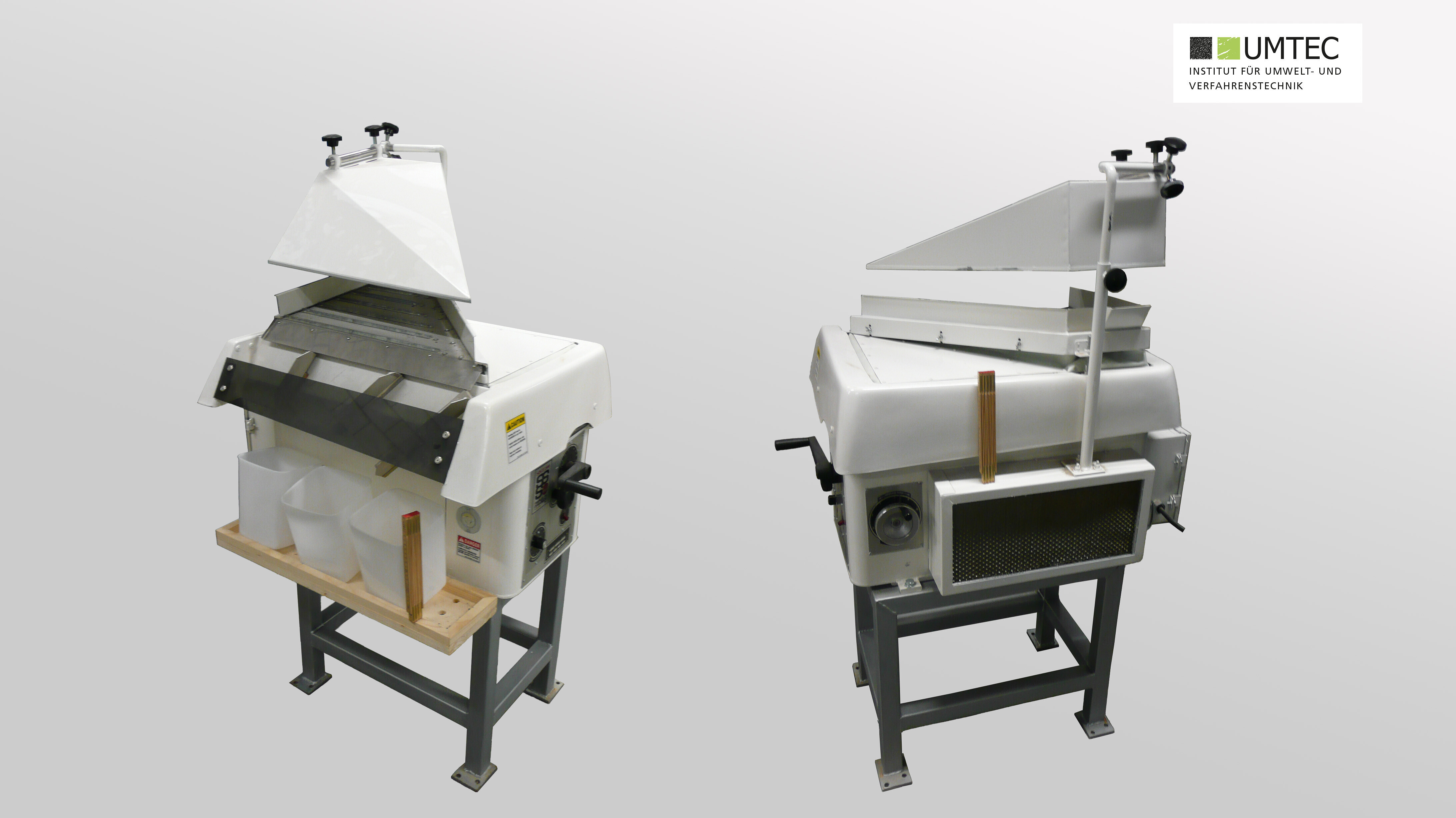 - Verschiedene Dichte-Trennschnitte möglich durch Einstellung der Schwingungsfrequenz/Neigung des Tisches