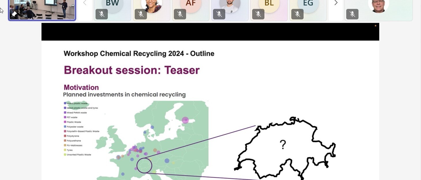 Der Workshop wurde durch thematische Breakouts fortgesetzt, in denen sowohl physisch als auch online Teilnehmende ausgewählte Aspekte und Technologien vertieften und diskutierten. Am Nachmittag waren fünf Impulsvorträge verschiedener Startups auf dem Programm, die einen guten Eindruck vermittelten, wie sehr der Schlüssel zu einer Bewertung in der sorgfältigen Differenzierung nach Zielparametern, Stoffströmen und Anlagengrössen liegt. Die Antwort auf die Frage, ob das chemische Recycling eine Wertschöpfung darstellt, hängt demnach von der Art und Qualität des Ausgangsmaterials, beispielsweise Altplastik, faserverstärkte Kunststoffe oder Textilabfälle, sowie von vielen weiteren Bezugsgrössen ab.