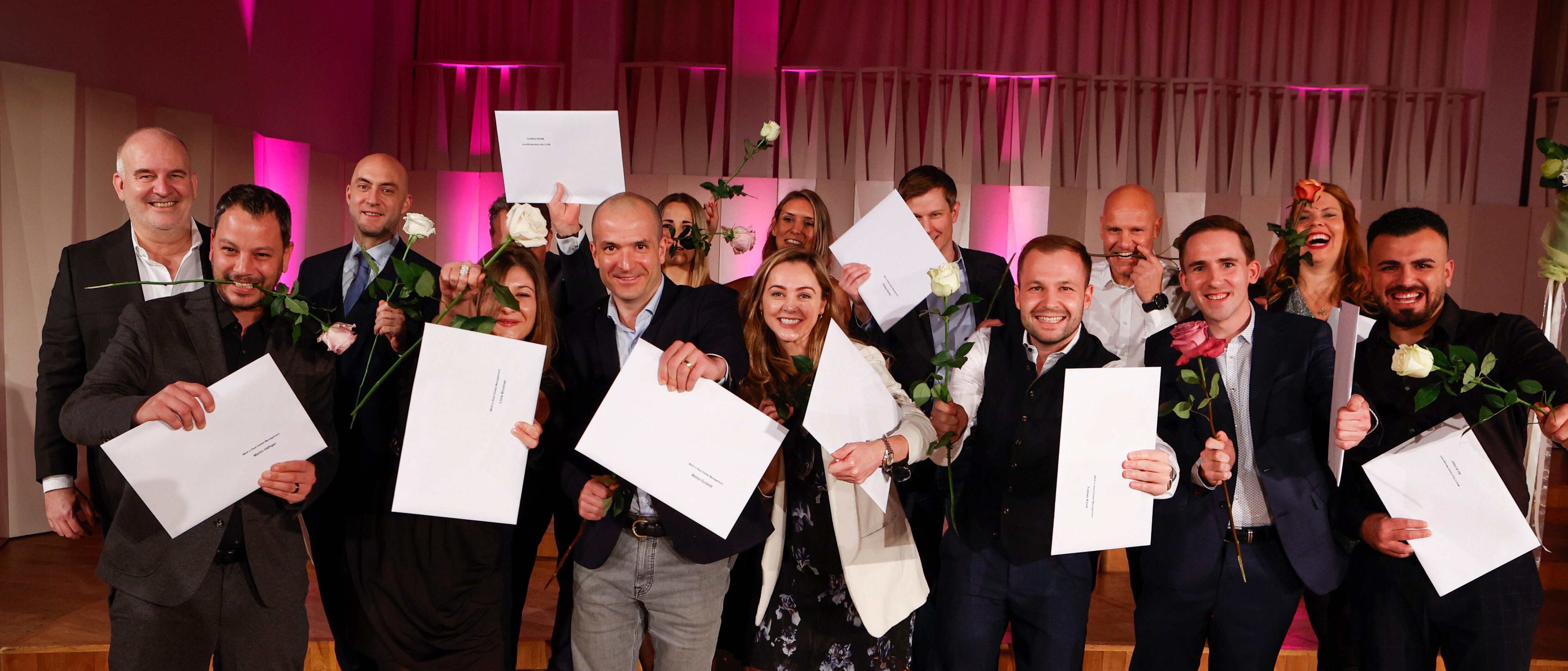 «Wir von der Weiterbildung OST haben euch seit eurer Anmeldung auf dem Weg zum MAS begleitet und freuen uns sehr, euch heute die Diplome überreichen zu dürfen», sagte Alexandra Egger, Leiterin der Weiterbildung OST. Mit diesen Worten begann für die Absolventinnen und Absolventen der lang ersehnte Moment der Diplomübergabe. Mit festem Händedruck, freudigen Umarmungen und breiten Lächeln nahmen die Absolventinnen und Absolventen die MAS-Diplome von ihren Studienleiterinnen und Studienleitern entgegen. 13 Absolventinnen und Absolventen des Departements Gesundheit, 10 des Departements Soziale Arbeit, 48 des Departements Wirtschaft und 16 des Departements Architektur, Bau, Landschaft, Raum haben ihre Weiterbildung erfolgreich abgeschlossen. Anschliessend wurde bei einem Apéro angestossen, gratuliert und gefeiert.