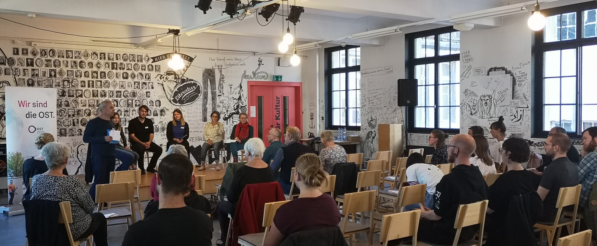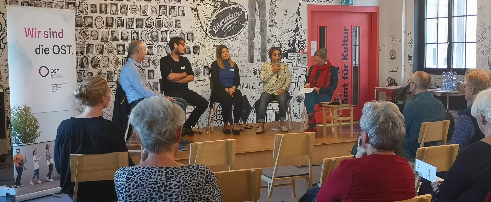 Wie wird Solidarität in der Ostschweiz gelebt? Und lässt sich solidarisches Handeln in der Ostschweiz etablieren? Diese Fragen standen im Zentrum der Podiumsdiskussion, die am Donnerstag, 23. September 2021, im Raum für Literatur in St.Gallen stattfand. Unter der Leitung von Annegret Wigger, Kantonsrätin Appenzell Ausserrhoden, diskutierten fünf solidarisch engagierte Frauen und Männer. Sie erklärten, was sie persönlich unter Solidarität verstehen, welche ihre Motive für ihr solidarisches Handeln sind und welchen Stolpersteinen sie in ihrer Arbeit begegnen.