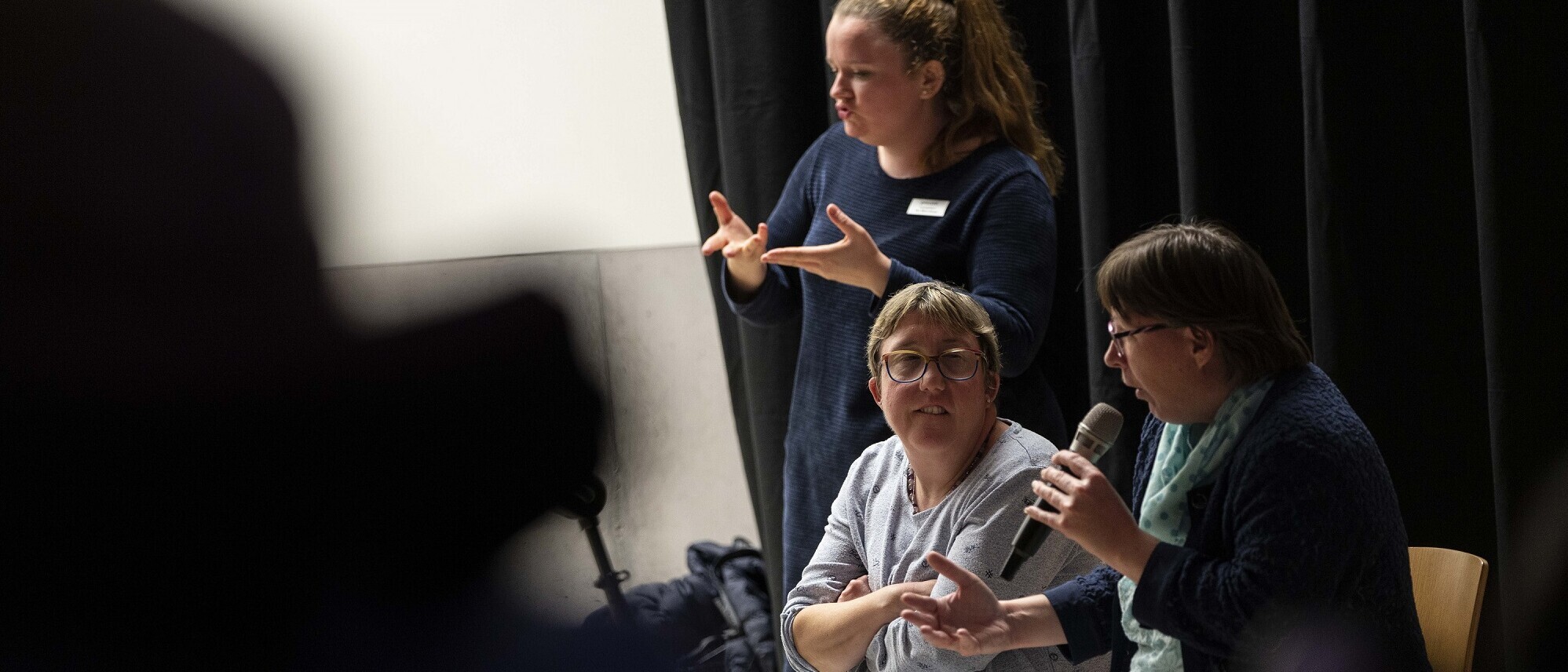Wie die Protagonistin des Filmes «Alive» nehmen auch die Selbstvertreterinnen Susi Rutishauser und Karin Zingg ihr Leben selbst in die Hand. Sie arbeiten im Projekt SEGEL der OST mit und haben dort einen Gesprächsleitfaden zum Thema «Selbstbestimmung in schwierigen Entscheiden» entwickelt. In der Podiumsdiskussion anmoderiert von Rudi Maier betonten sie: «Dass wir unsere Anliegen selbst vertreten können und gehört werden, ist uns wichtig.»