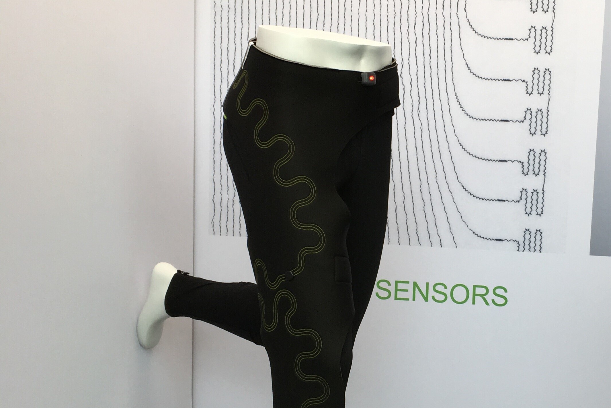 - Eine mit Beschleunigungssensoren ausgestattete Sprunghose für hochfrequente Messungen.