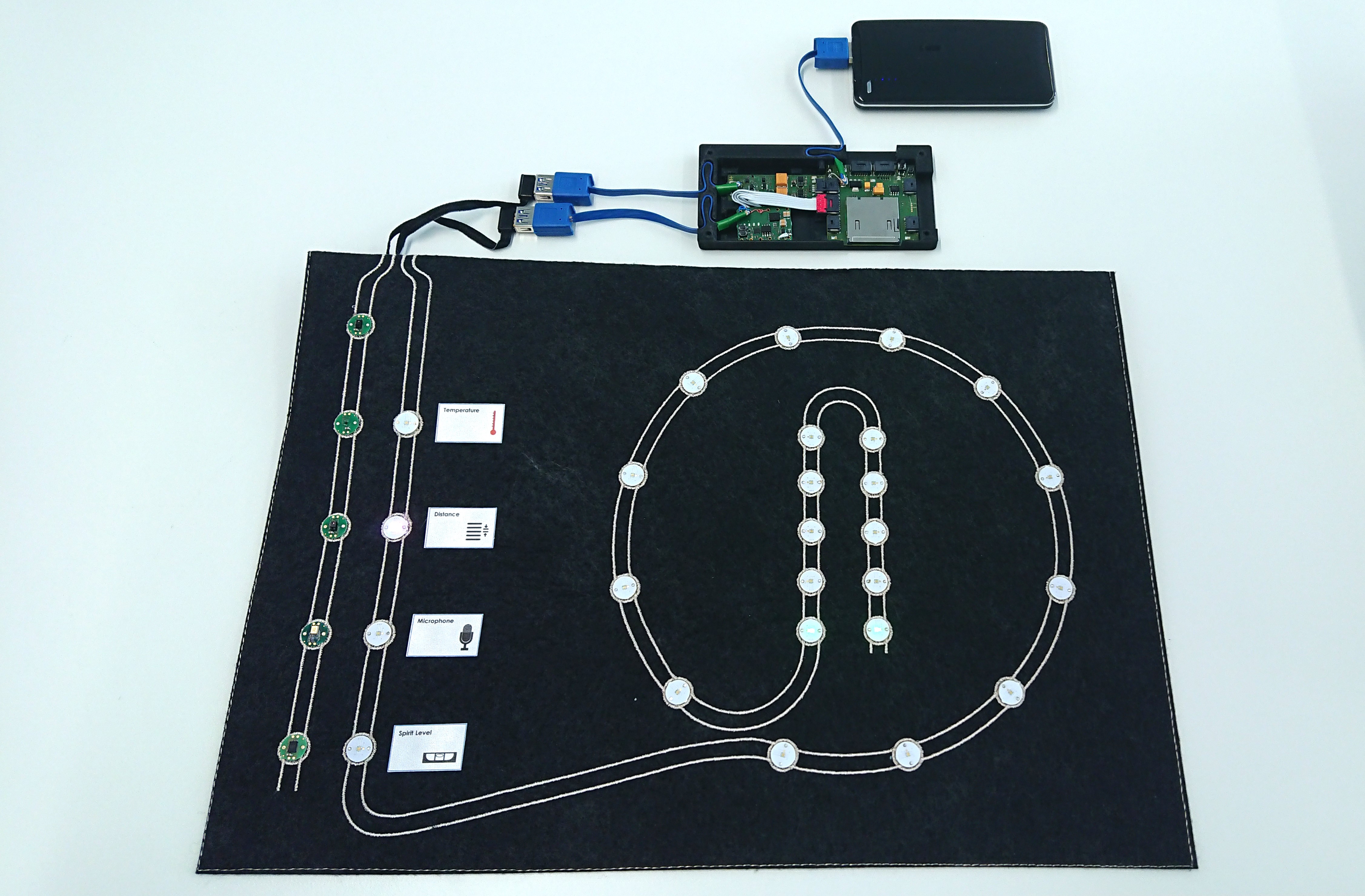 Zudem entstand eine umfassende Toolbox für Sensorpailletten, darunter Sensoren für Temperatur, Feuchtigkeit, Schallpegel, Beschleunigung, Drehbewegungen, Magnetfelder, Lichtfarben, Gestik, Luftdruck und CO2.