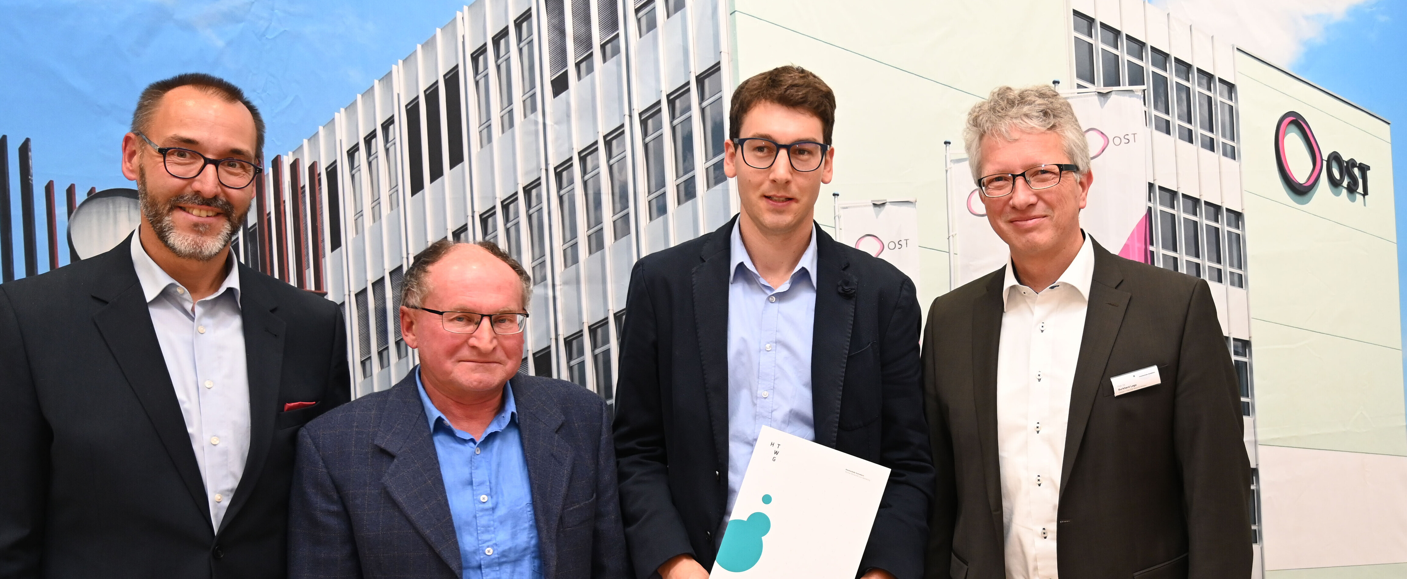 Bildlegende: (von links) Prof. Dr. Carsten Ziolek, Prof. Günter Nagel, Preisträger Christian Kreis und Prof. Dr. Burkhard Lege