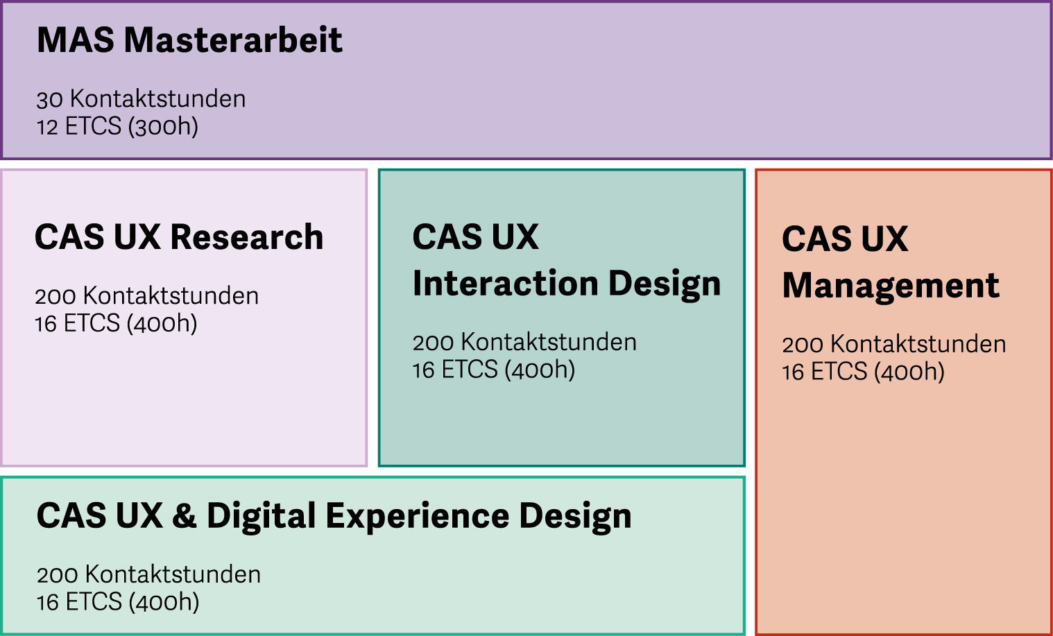 Je nach Vorwissen und persönlicher Situation kann der Abschluss MAS Human Computer Interaction Design auch über die individuelle Zusammenstellung von Zertifikatskursen erlangt werden. Insbesondere bieten sich hierbei die Kurse CAS UX Management und CAS Frontend Engineering zur Kombination an.