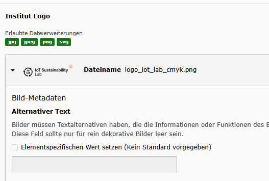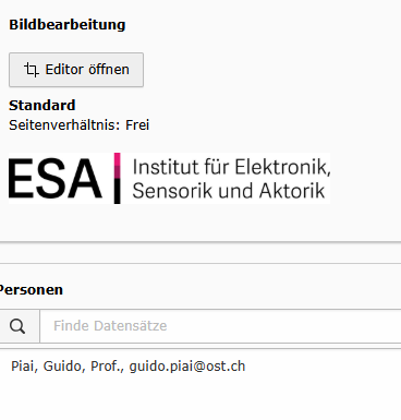 Für die Instituts-Seiten gibt es eine spezielle Seitenvorlage “Instituts Home” und “Instituts Unterseiten”. Sie enthält zusätzliche Funktionen: