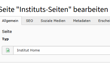 Für die Startseite muss unter Seiteneigenschaften der Typ “Institut Home” gewählt werden.