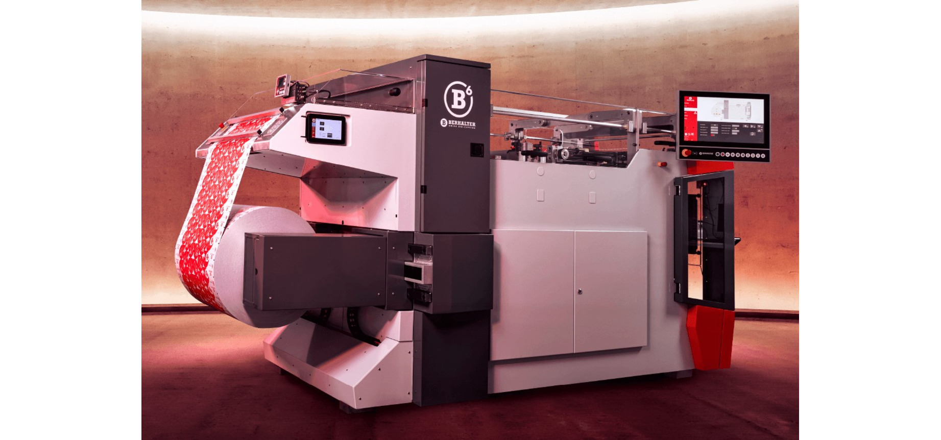 Im Jahr 2020 lancierte die Berhalter AG ihre neue Stanzmaschinengeneration B6. Deutlich gesteigerte Taktzahlen erhöhen die Produktivität der Maschine und verlangen nach automatisierten Lösungen in den zur Stanzmaschine vor- und nachgelagerten Prozessen. Dazu gehört auch der Materialrollenwechsel.
