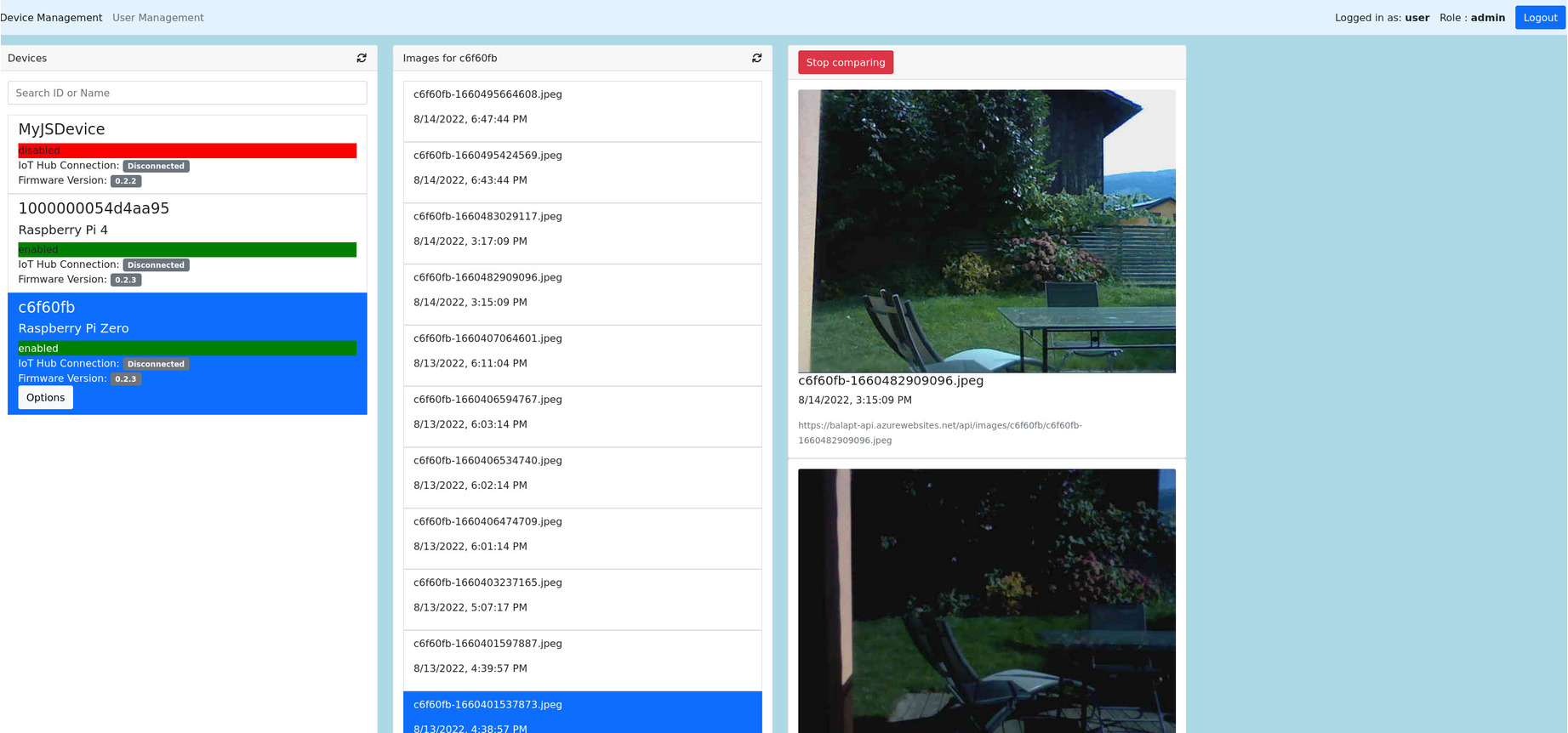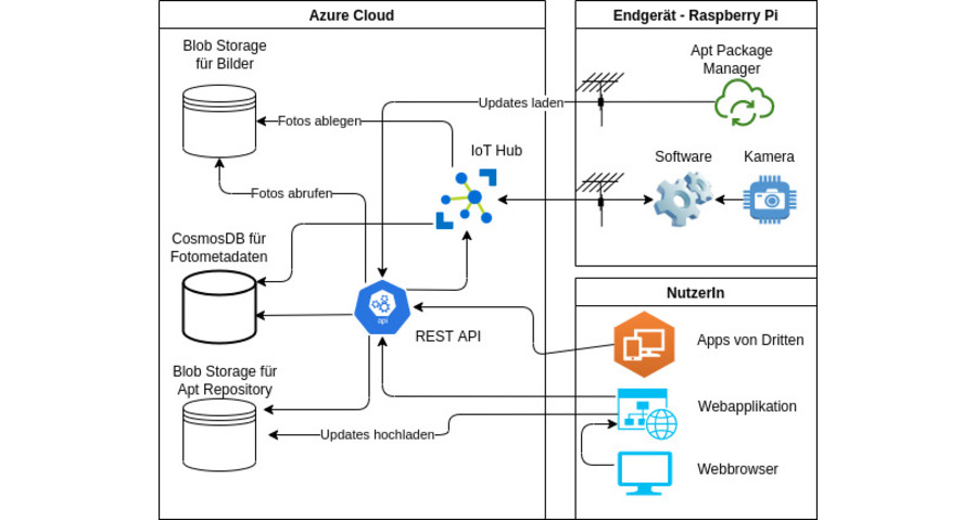Ziel der Arbeit: Ziel dieser Arbeit ist die Entwicklung eines solchen Systems im Auftrag der Firma Adlos AG. Das System nimmt regelmässig Bilder über autonome Geräte auf, welche per Mobilfunk mit der Cloud vernetzt sind, und bietet über eine Schnittstelle Zugang zu den Aufnahmen.