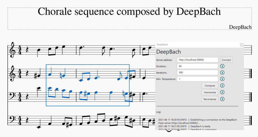 Vorgehen: Dazu wurden DeepBach und MuseGAN – zwei Modelle für die Generierung mehrstimmiger Musik – analysiert, implementiert und miteinander verglichen. Um die Modelle in Betrieb zu nehmen, wurde für DeepBach die Referenzimplementierung verwendet und bei MuseGAN eine Neuimplementierung vorgenommen. Beide wurden anschliessend auf denselben Bach-Chorälen trainiert, mit dem Ziel, dass sie danach selbst in der Lage sind, neue Choral-Sequenzen im Stil von J.S. Bach zu generieren. Zur Demonstration wurde für beide Modelle je ein Demonstrator entwickelt, welcher die einfache Interkation mit dem Modell über eine grafische Benutzeroberfläche und einem MIDI Keyboard ermöglicht.