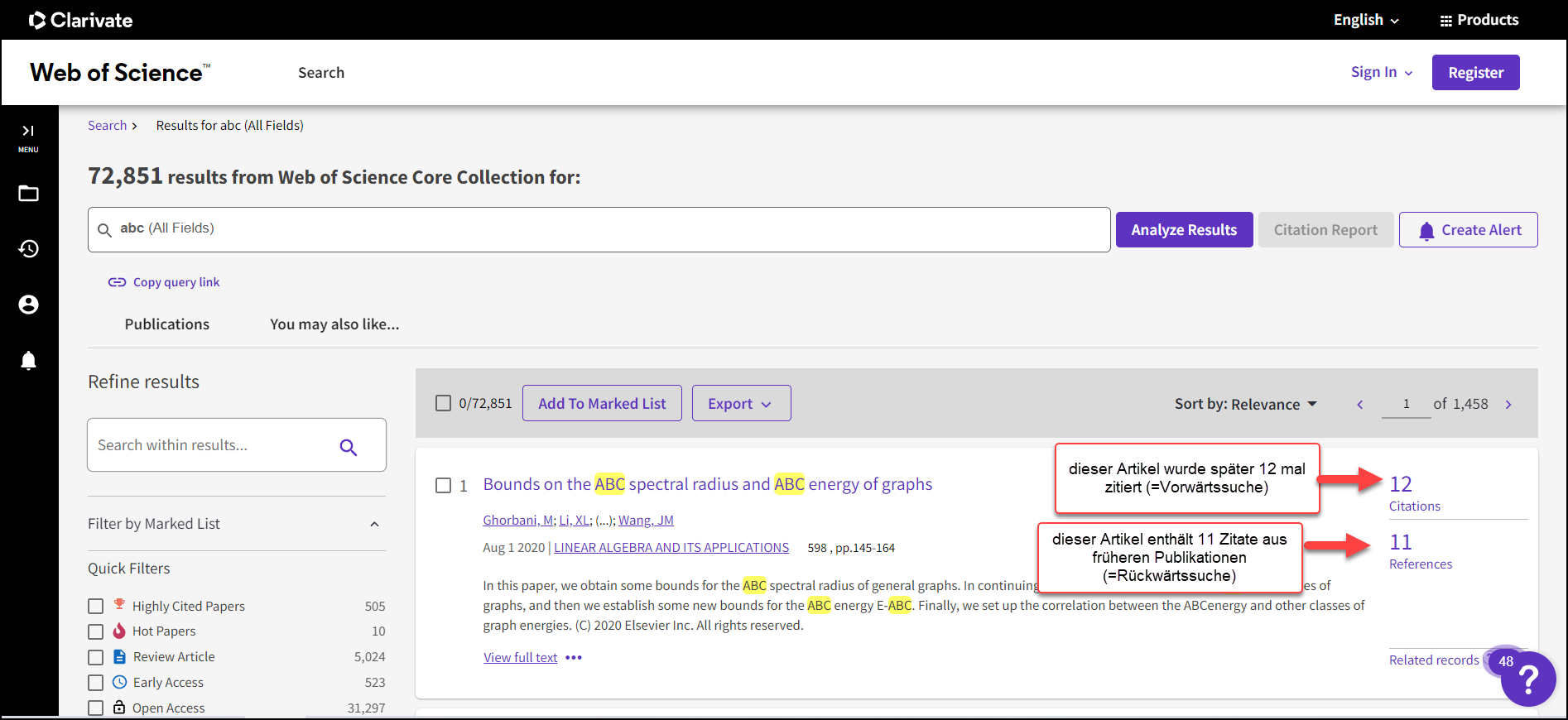 - Sehen Sie sich an, in welchen Publikationen der vorliegende Artikel später zitiert wurde (Vorwärtssuche).