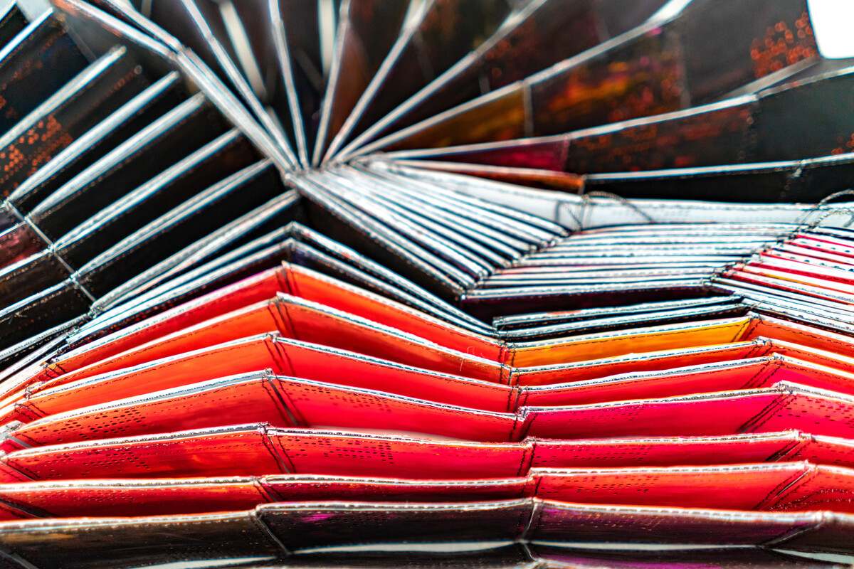 Die einzelnen Werke können zu einer raumgreifenden Installation gehängt und mit Lichtprojektionen auf die Rückseite ergänzt werden. Alle Bilder sind faltbar.