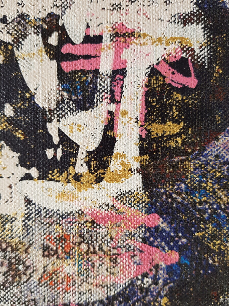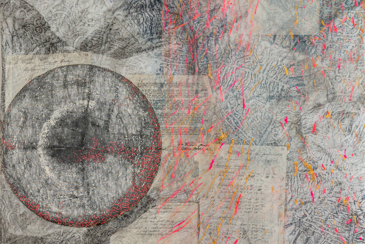 2020 hat Judith Mundwiler aus dem gebrauchten Schleifpapier, Chiffon und Papier ein 100x100 cm grosses Werk geschaffen.