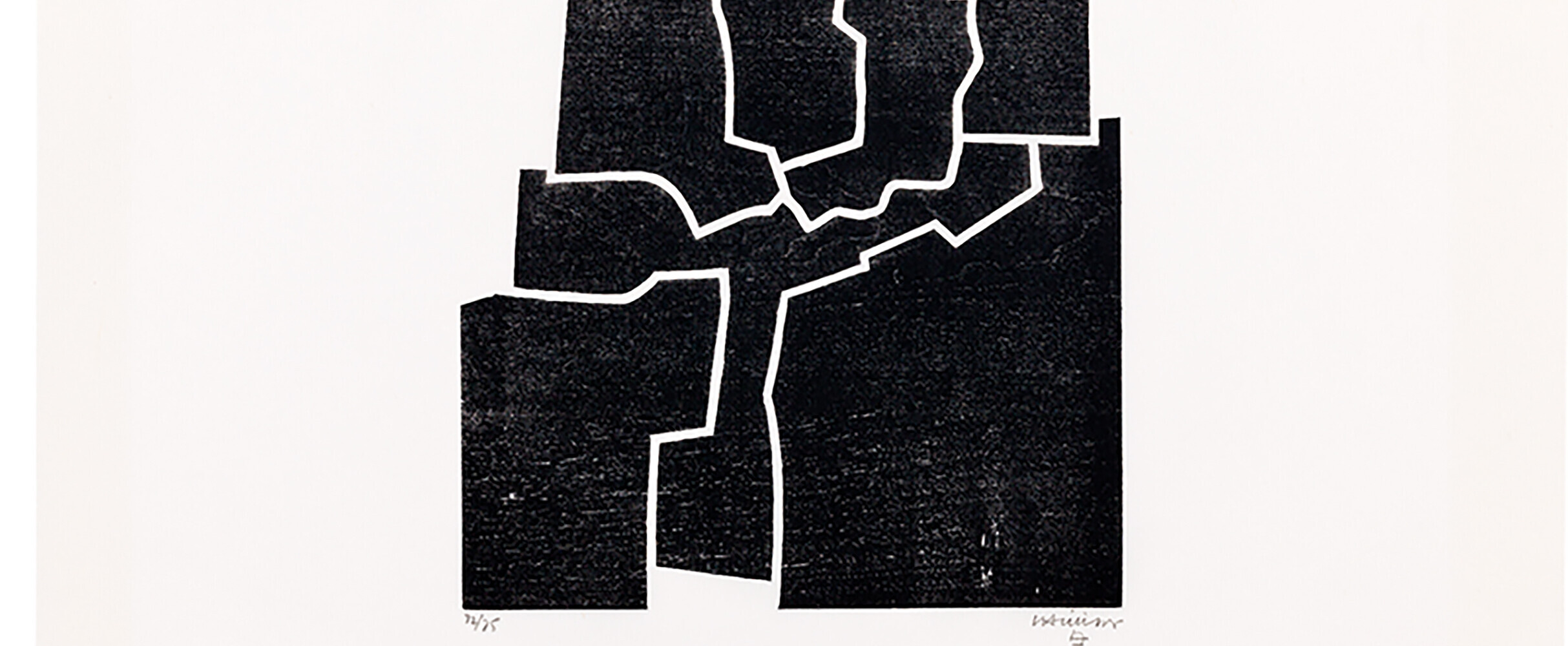 Bei einem Rundgang um die Bibliothek im 4. Obergeschoss begegnet man drei unterschiedlichen Druckserien des deutschen Malers und Objektkünstlers Günther Uecker (*1930). Die erste Gruppe, fünf in Weiss gehaltene Prägedrucke, mutet still und fragil an. Bei näherer Betrachtung sieht man, dass der Druckstock auf rhythmisch streng angeordneten Nägeln basiert, allesamt in die gleiche Richtung ein- und umgeschlagen. Der Nagel ist das prägendste Motiv und Material im Gesamtwerk Günther Ueckers. Uecker wird deshalb vielerorts als Nagelkünstler bezeichnet, denn mit seinem stetigen Nageleinschlag hat er die triviale, alltägliche Handlung des Nageleinschlages zu einer «kunstwürdigen Handlung» (Dieter Honisch) und damit die aktive Produktion von Kunst sichtbar gemacht. Der Nagel ist aber nicht einfach als Motiv oder Metapher der Gewalt zu verstehen, sondern als Strukturelement.