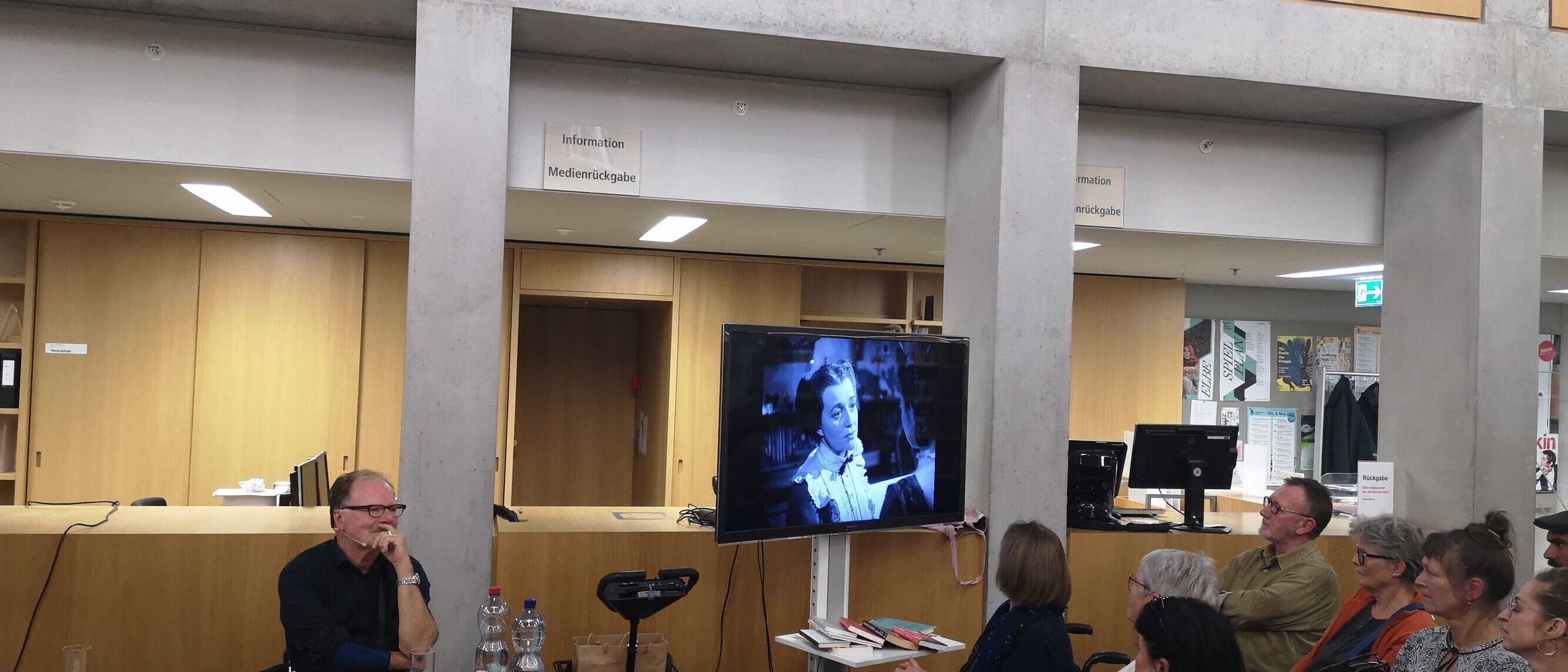 Nach einem letzten Lesungsteil schlüpfte Alex Oberholzer kurz zurück in die Rolle des Filmjournalisten und gab Statements zu unterschiedlichen Filmsequenzen. Beim nachfolgenden Apéro konnten die Teilnehmenden ihre Diskussionen weiter vertiefen.