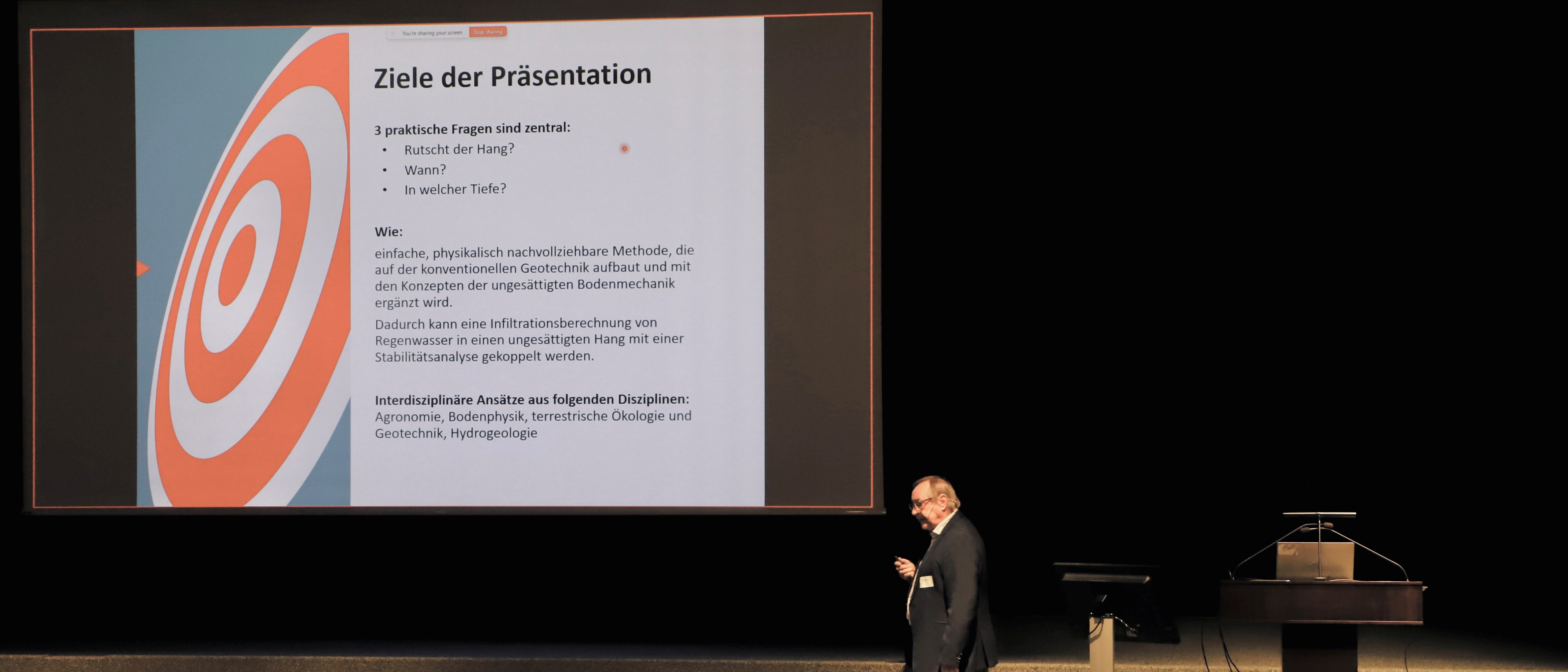 - Hansruedi Schneider (Geo-Consulting) zeigte, wie Regeninfiltration, Saugspannung und Bodenparameter die Stabilität natürlicher, ungesättigter Hänge beeinflussen – und wie sich Zeitpunkt und Tiefe eines möglichen Versagens realitätsnah prognostizieren lassen.