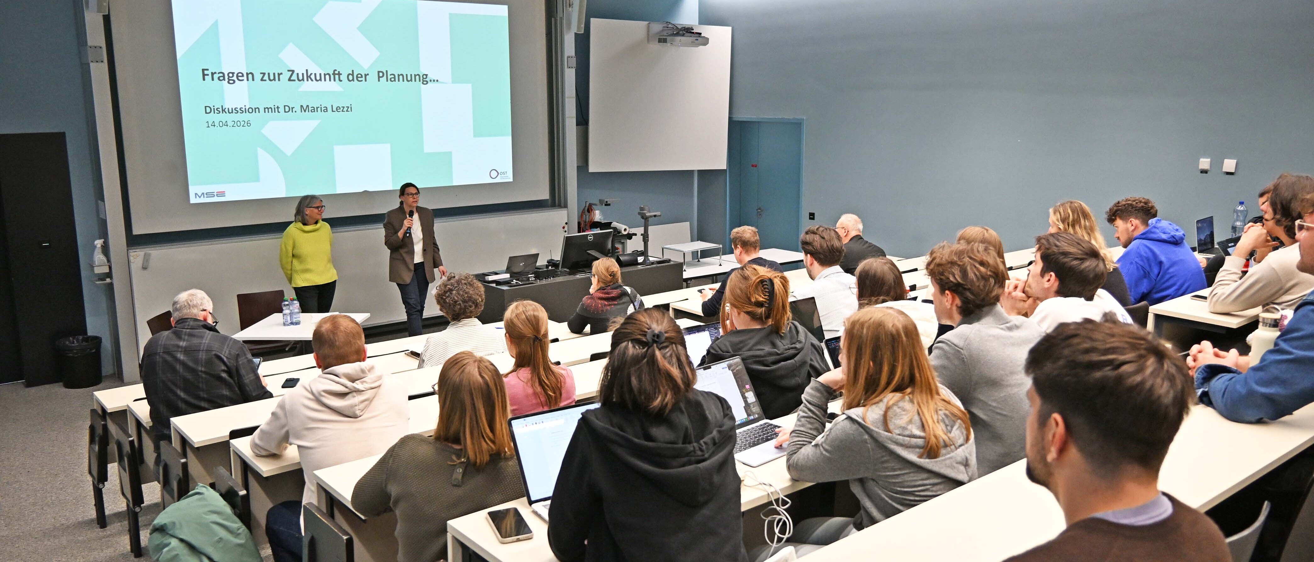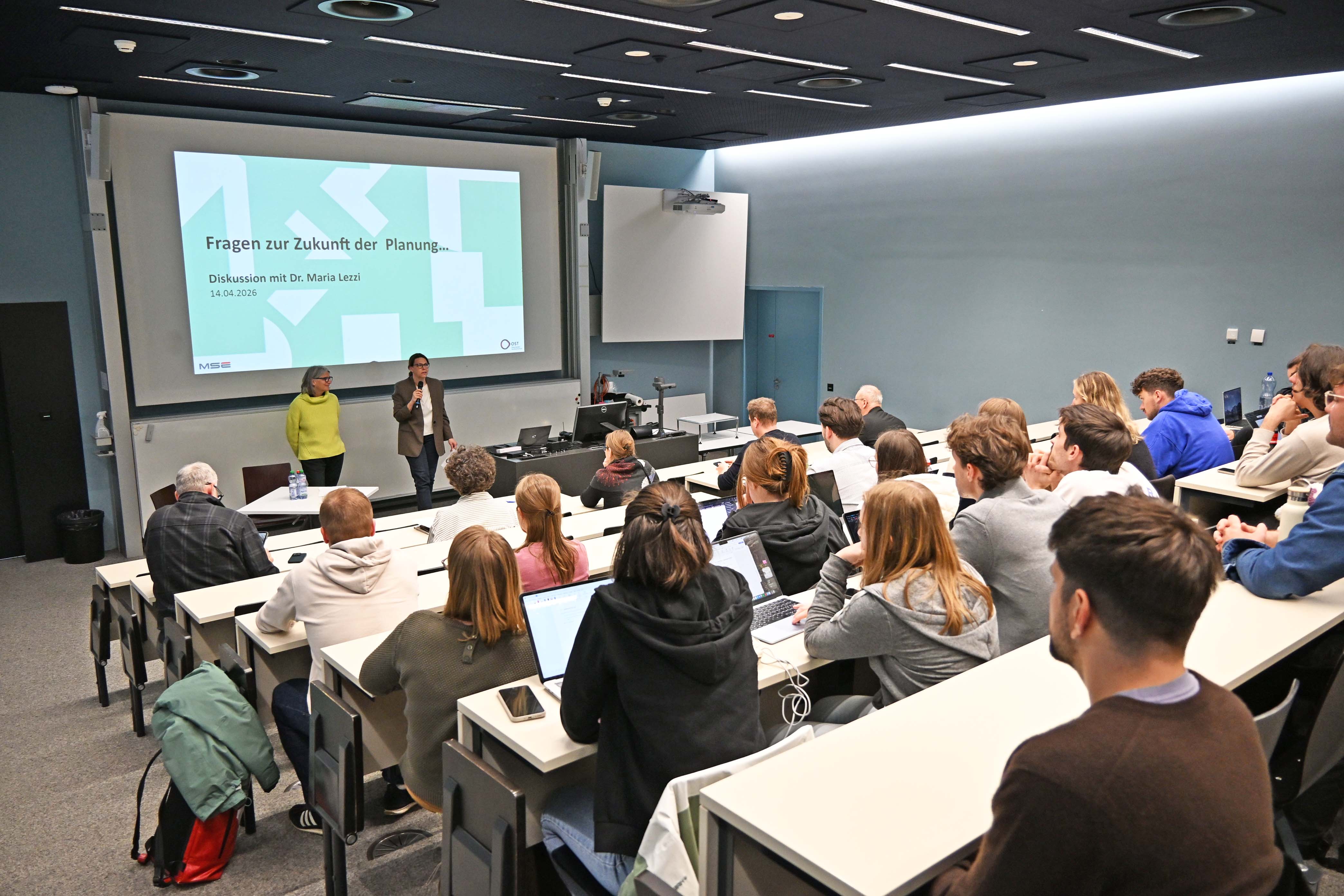 Im Vorfeld zur Veranstaltung hatten die Studierenden des MSE ReLa und der verwandten Bachelor-Studiengänge in Stadt-, Verkehrs- und Raumplanung sowie in Landschaftsarchitektur ihre Fragen einsenden können, und hatten nun die einmalige Gelegenheit mit Frau Lezzi direkt ins Gespräch zu kommen.