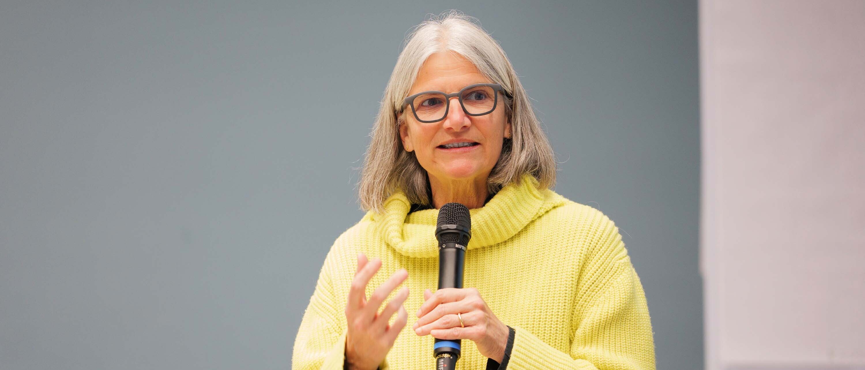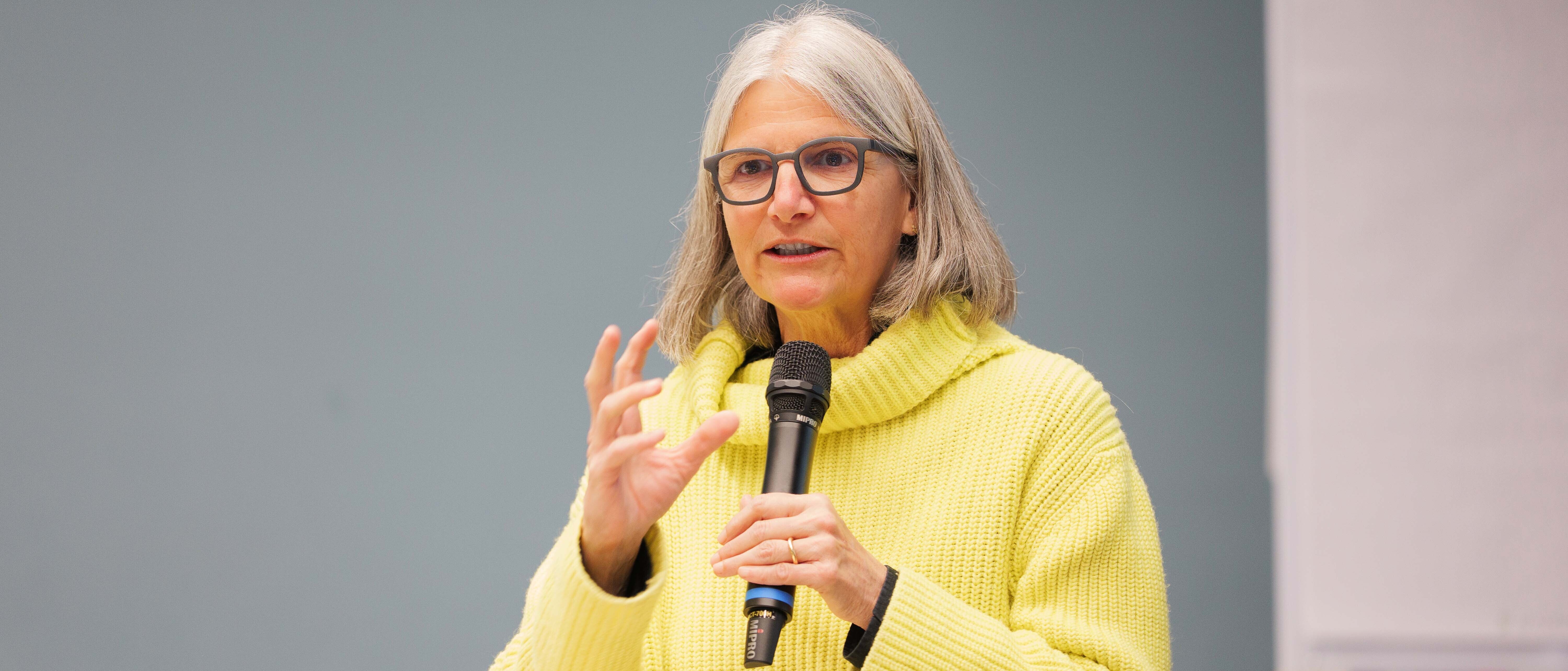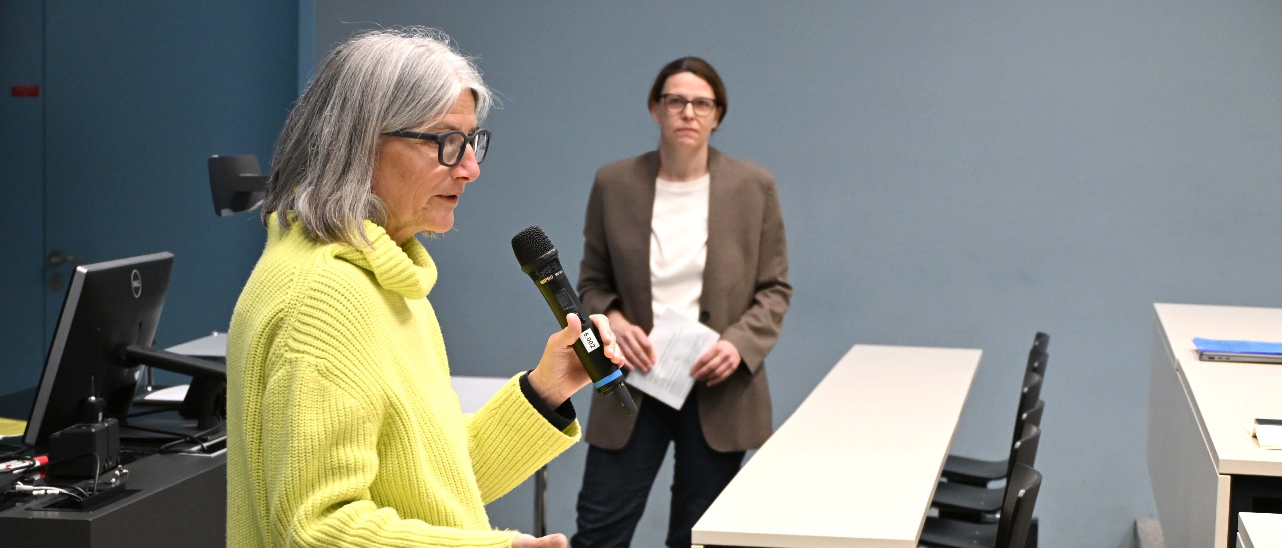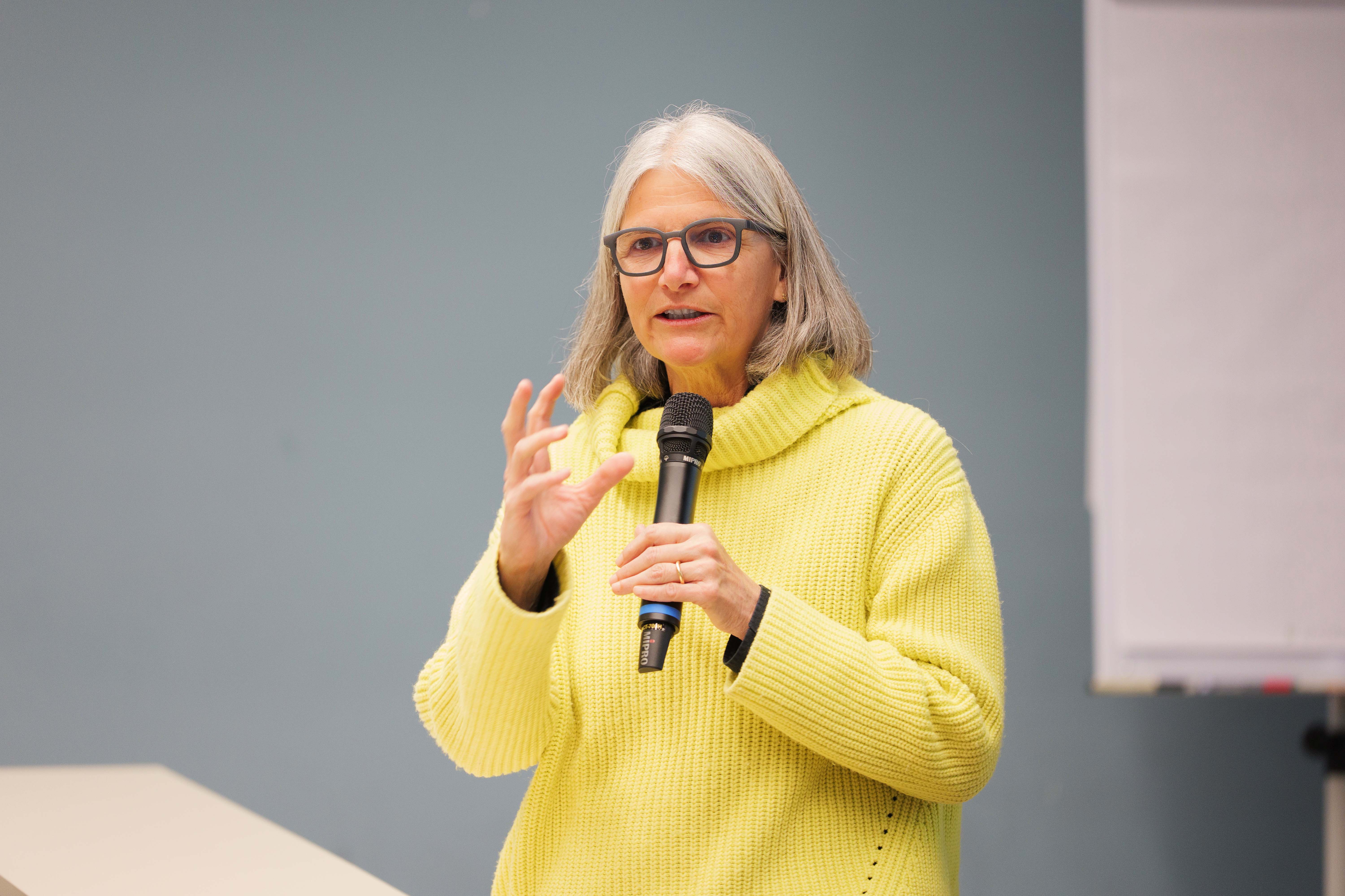 Ex-ARE-Direktorin Maria Lezzi diskutiert mit Studierenden