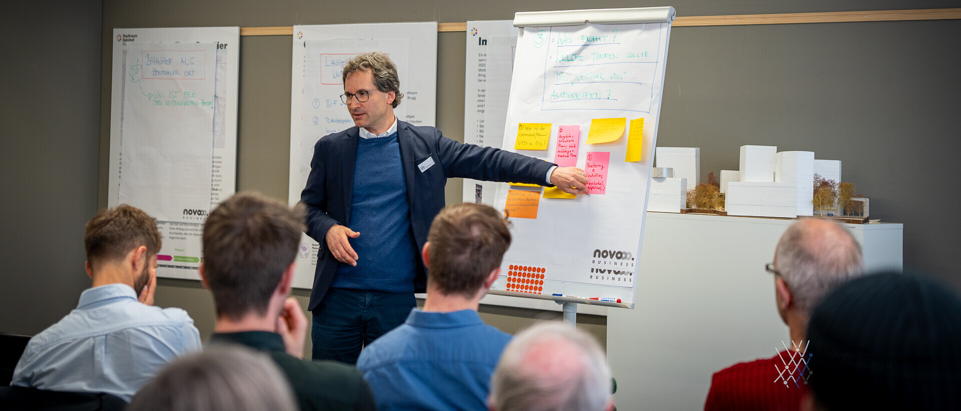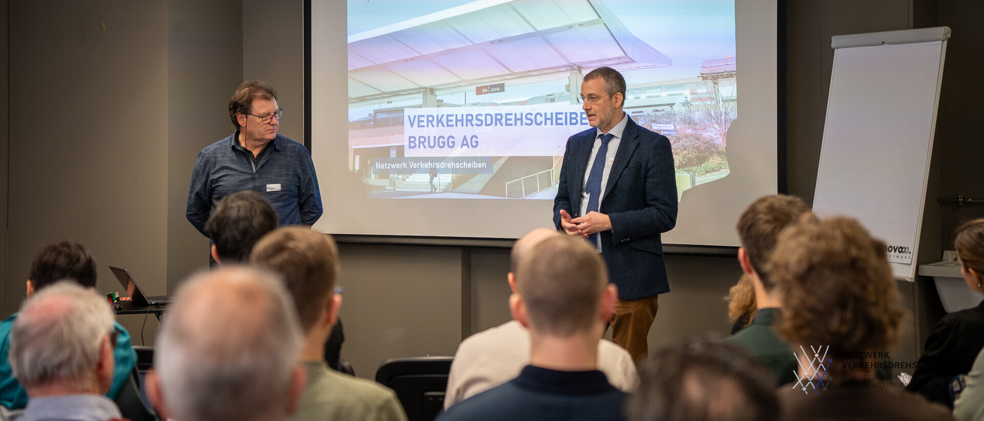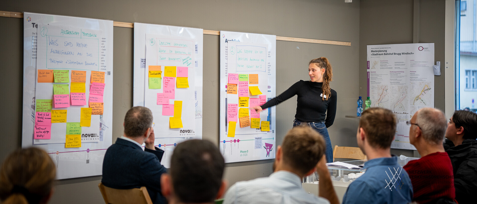 Der Veranstaltungsraum “Stadtkiosk” beim Bahnhof Brugg war gut gefüllt, als IRAP-Institutsleiter und Koordinator des Netzwerks Verkehrsdrehschieben Prof. Gunnar Heipp am Dienstag, 31. März 2026 die Anwesenden zu einem tagesfüllenden Workshop über die Zukunft des Bahnhofsumfelds von Brugg/Windisch begrüsst. Unter den Teilnehmenden befanden sich Vertreterinnen und Vertreter der Gemeinden, des Kantons, der SBB, des Bundes sowie der Brugg Immobilien.