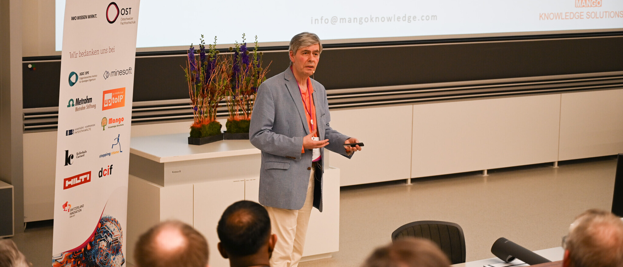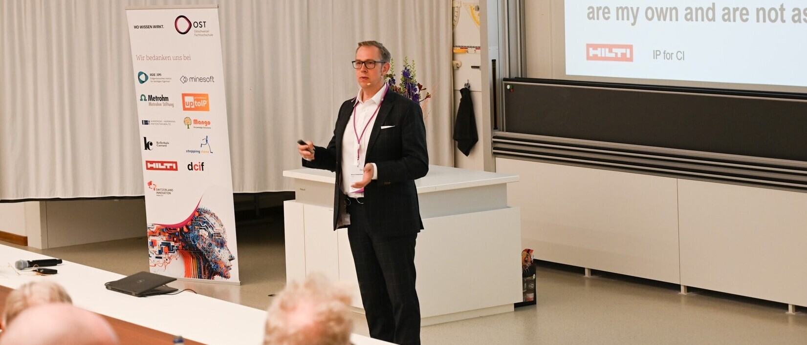 «Wir befinden uns in einem wachsenden Spannungsfeld», sagte Prof. Dr.-Ing. Knut Siercks, Leiter Departement Technik der OST, in seiner Eröffnung der Veranstaltung «IP-Awareness & Value Creation» an der OST in Buchs. «KI bietet enorme Möglichkeiten im Innovationsprozess, die es zu nutzen gilt, aber auch unterschätzte Risiken. Dieser Diskurs muss systematisch geführt werden.»