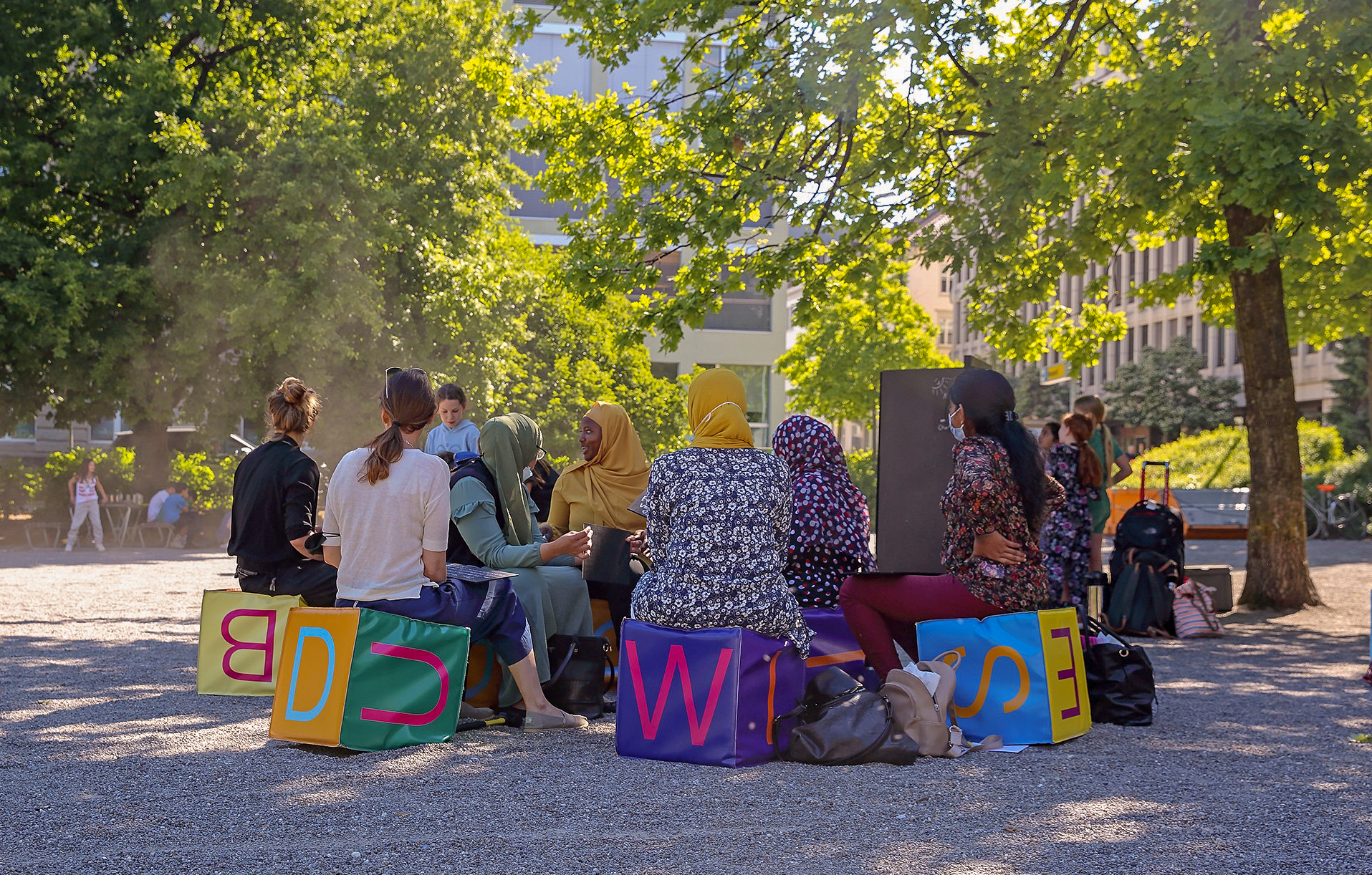 Wie komme ich mit Schweizer:innen in Kontakt? Weshalb sind unsere Diplome hier nicht gültig? Wie kann man ein Quartier zu einem Begegnungsort machen? Über fünfhundert Fragen und Wünsche hat das Projektteam an mehreren Freiluftparlamentstagen vor einem Jahr in St.Gallen und Wil gesammelt. Diese Fragen wurden in Themenfelder zusammengefasst, die das Zusammenleben in einer kulturell heterogenen Gesellschaft prägen. Vom 26. August bis am 4. September werden diese Themen in einem Freiluftparlament beim Frauenpavillon im St.Galler Stadtpark verhandelt. «Während zehn Tagen soll der Stadtpark zu einem Ort werden, an dem Teilhabe neu gedacht und neue Kollaborationsformen entwickelt werden», sagt Selina Ingold, Professorin an der Ostschweizer Fachhochschule und Mitinitiantin des Projektes. «Oder anders gesagt, MOBILE versucht, die Demokratie zu demokratisieren – mit allen die hier sind», ergänzt Anna Graber, Künstlerin und ebenfalls Mitinitiantin von MOBILE. Der erste Tag legt dabei den Fokus auf das Thema der Sans Papiers.