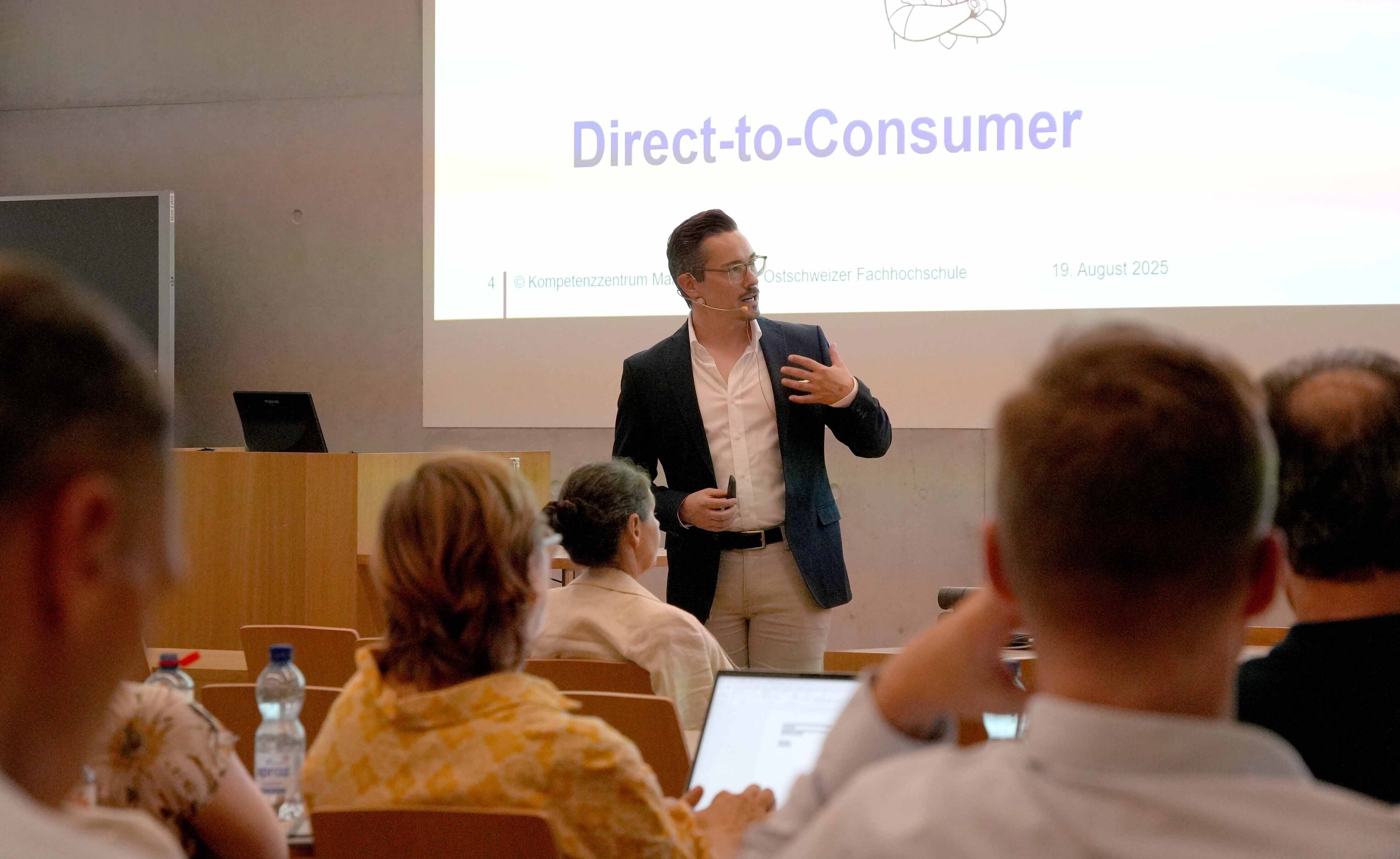 - 01: Dr. Benjamin Klink, Dozent für Marketing und Experte für E-Commerce an der OST, erklärt den Teilnehmenden im Rahmen von Gewerbe@OST den Direktvertrieb.