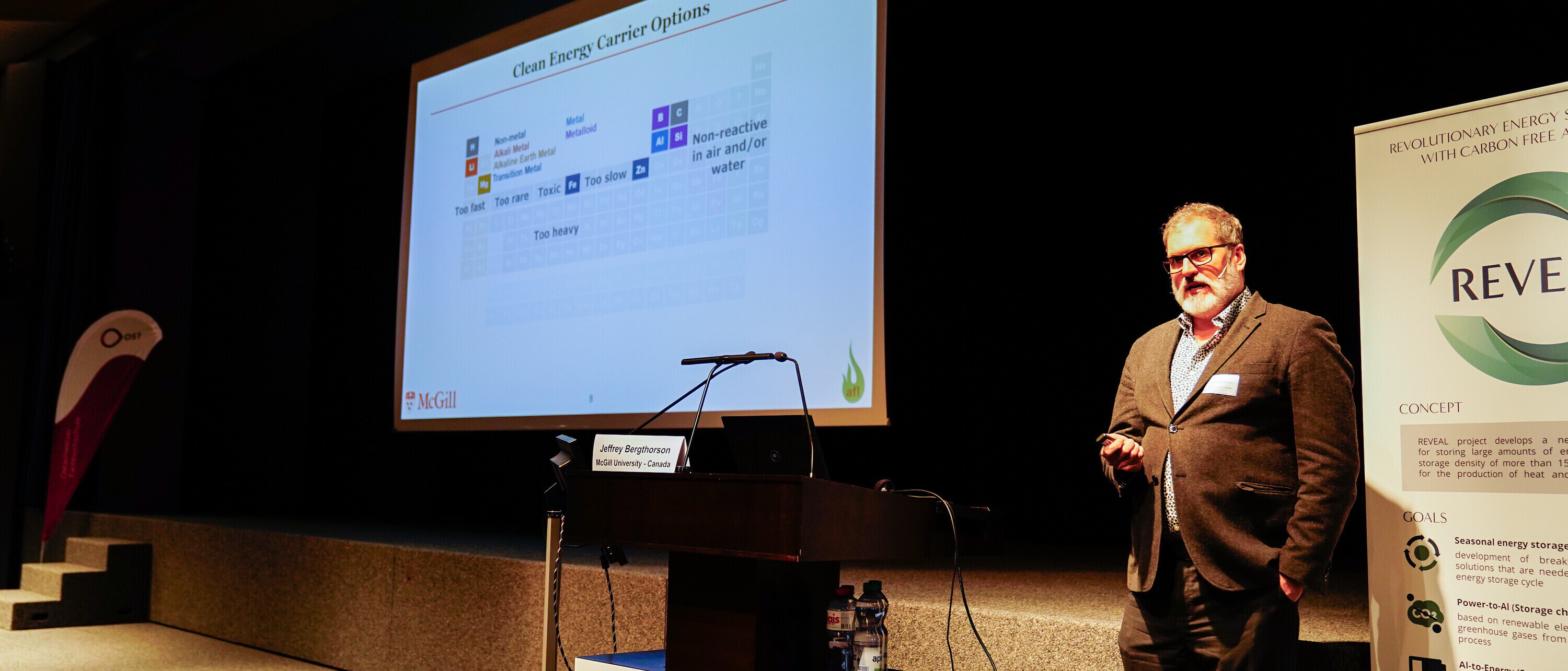 Metalle könnten laut einer wachsenden Anzahl von Forschenden die ideale Lösung für dieses Problem sein. Sie lassen sich praktisch unendlich lange lagern, sind einfach und sicher transportierbar und nehmen bei der Produktion riesige Mengen Energie auf. Wie diese Energie sich beispielsweise aus Aluminium wieder zurück in elektrischen Strom und Wärme verwandeln lässt, konnten die Teilnehmenden am 1. International Symposium on Renewable Metal Fuels diese Woche am Mittwoch und Donnerstag an der OST erleben: Neben einer kurzen Bühnendemonstration zur Wärme- und Wasserstofferzeugung im kleinen Labormassstab konnten sich Projektpartner bei einer Führung einen ersten Eindruck von einem grösseren Prototypen verschaffen, der derzeit vom Institut für Solartechnik (SPF) der OST in Rapperswil-Jona aufgebaut wird. Dieser wurde im Rahmen des Europäischen Verbund-Forschungsprojektes REVEAL entwickelt, welches durch das EU Programm Horizon Europe und das Schweizerische SERI gefördert wird. Nach der Inbetriebnahme soll hier live demonstriert werden, wie sich Aluminium durch chemische Prozesse umwandeln lässt und sich die dabei entstehende Wärme und der Wasserstoff etwa zur Heizung und Stromerzeugung für ein Gebäude wieder nutzbar machen lassen.