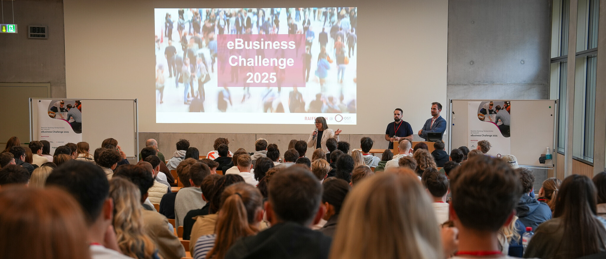 Die «eBusiness Challenge» findet seit 2008 statt. Dieser eintägige Wettbewerb ermöglicht es jungen Erwachsenen, sich mit den Chancen und Herausforderungen der Digitalisierung auseinanderzusetzen. Die Schülerinnen und Schüler von Berufsfachschulen und Mittelschulen entwickeln in Gruppen von drei bis fünf Personen innovative Lösungen zu einer vom Themensponsor vorgegebenen Aufgabenstellung. In diesem Jahr war dies Raiffeisen Schweiz mit dem Thema «NextGen Banking: Bankprodukte der Zukunft». Zu den weiteren Sponsoren gehören Egeli Informatik, Abacus und Abraxas. Gefördert wird die «eBusiness Challenge» von der Beisheim Stiftung und der Metrohm-Stiftung. Partner ist der Verein IT rockt! St.Gallen.