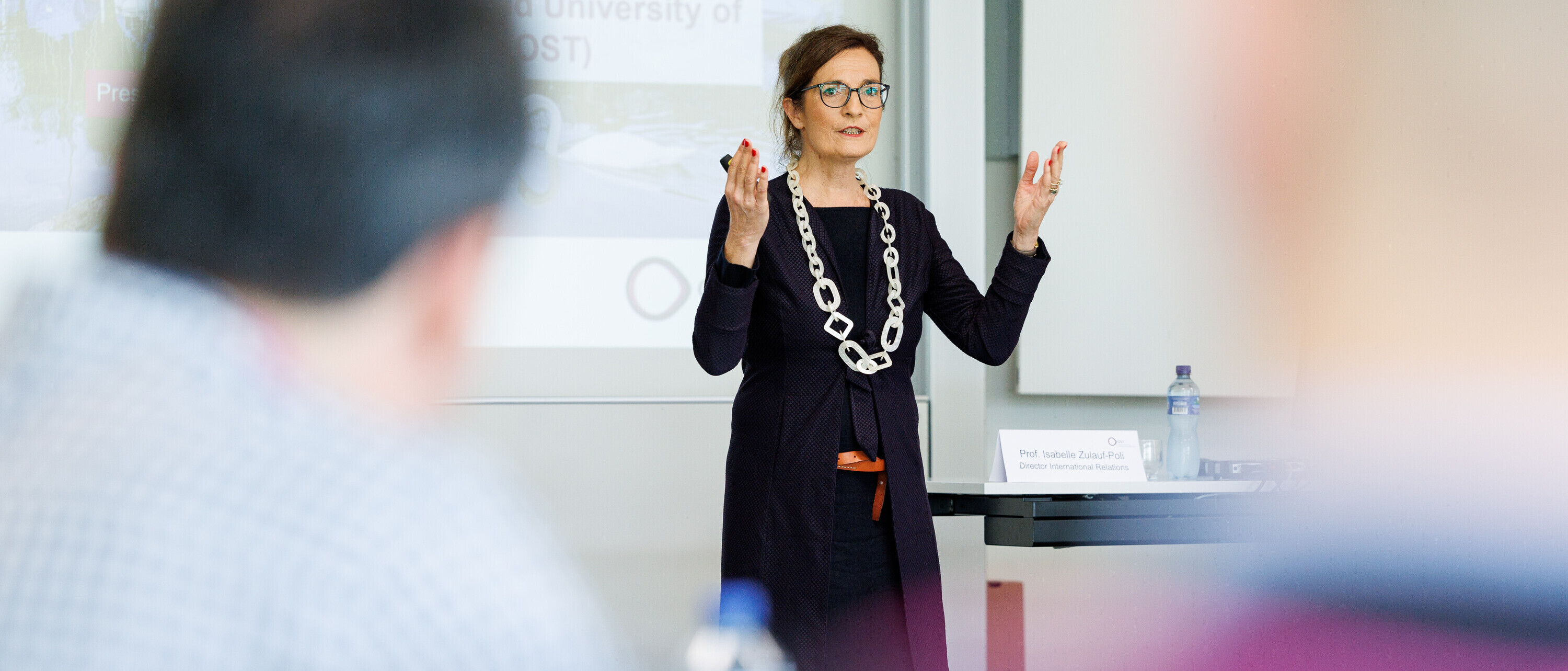 Beim Ausräumen von Vorurteilen über die Schweiz konnte Isabelle Zulauf-Poli, Leiterin International Relations an der OST, im Gespräch mit den internationalen Kolleginnen und Kollegen ganze Arbeit leisten. Nein, die Schweizer Wirtschaft besteht nicht wie vom internationalen Publikum geschätzt zu 80 Prozent aus Finanzdienstleistungen – tatsächlich entfallen nur rund neun Prozent des BIP darauf. Auch ist das Alpenland nicht Teil der europäischen Union, obwohl sie als Mitglied des Schengenraums eng mit den europäischen Nachbarn verbunden ist und sich mit ihren vier Landessprachen auch sehr gut mit diesen verständigen kann. Und auch ist die Schweiz nicht einfach ein kleines Land mit Bergen, sondern bietet ein diverses Klima, das von hochalpiner Natur bis zum italienischen Feriengefühl alles abdecken kann.