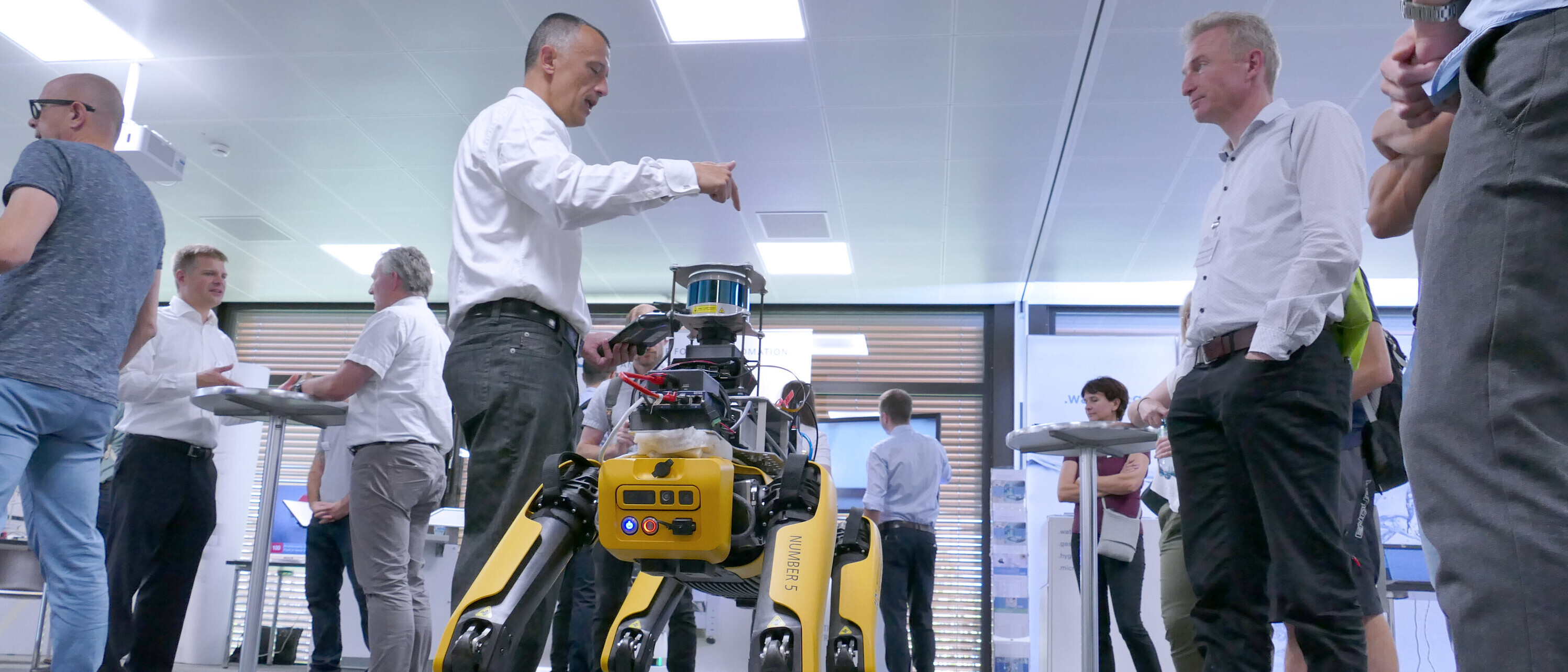 Besondere Aufmerksamkeit erhielt das Inputreferat von ETH-Professor Marco Hutter, der seinen Schwerpunkt mobilen Robotern für eine autonome Industrie widmete. Denn entgegen der gefühlt seit Ewigkeiten diskutierten Digitalisierung hinkt der Industriesektor laut einer aktuellen McKinsey-Studie Branchen wie Logistik, Banking und Telekommunikation deutlich hinterher, was das ausgeschöpfte Automations- und Digitalisierungspotenzial betrifft.