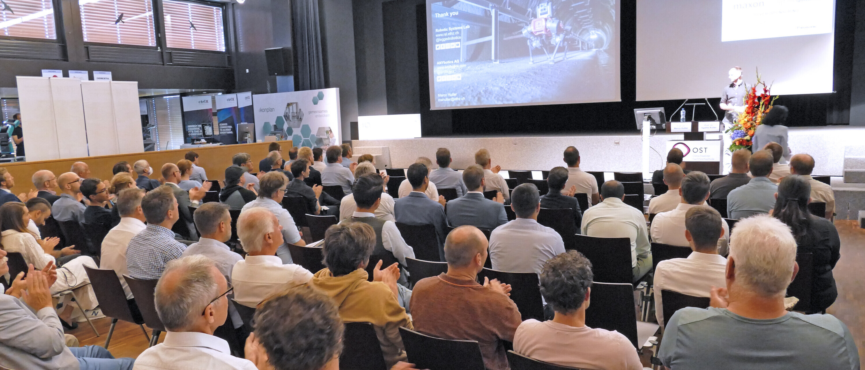 Hutter machte vor diesem Hintergrund keinen Hehl daraus, dass er die Zukunft der Industrie in einer autonomen Industrie sieht, in der Roboter eine Schlüsselrolle spielen. Von automatisierten Wartungsarbeiten und Standard-Prozessen bis zu komlett vernetzten Industriesystemen und hochkomplexen Assistenzaufgaben für Roboter in der Zusammenarbeit mit Menschen zeigte er verschiedene Szenarien, basierend auf dem aktuellen Stand der Robotik, auf. «Wir befinden uns an der Schwelle zur nächsten robotischen Revolution», so Hutter.