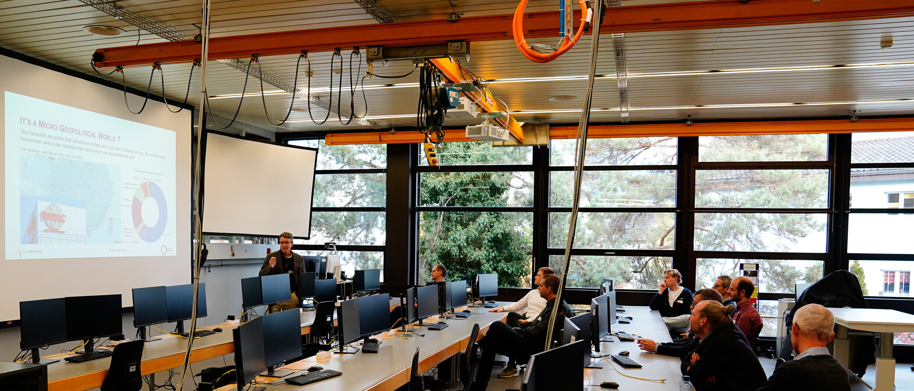 Nach der Begrüssung durch Reto Bonderer, Fachabteilungsleiter Elektrotechnik, und Laurent Metzger, Departementsleiter Informatik an der OST sowie David Gisler und Michael Kiy von Siemens Schweiz standen neben dem Austausch über Technologie-, Wirtschafts- und Didaktiktrends die Führungen durch die Lehr- und Forschungslabors der OST im Zentrum des Dozierendentreffs. Bei vier Führungen konnten die Dozierenden unter anderem das Antennen- und Mikroelektroniklabor sowie Informatiklabors wie das Smart Interaction Lab besuchen.