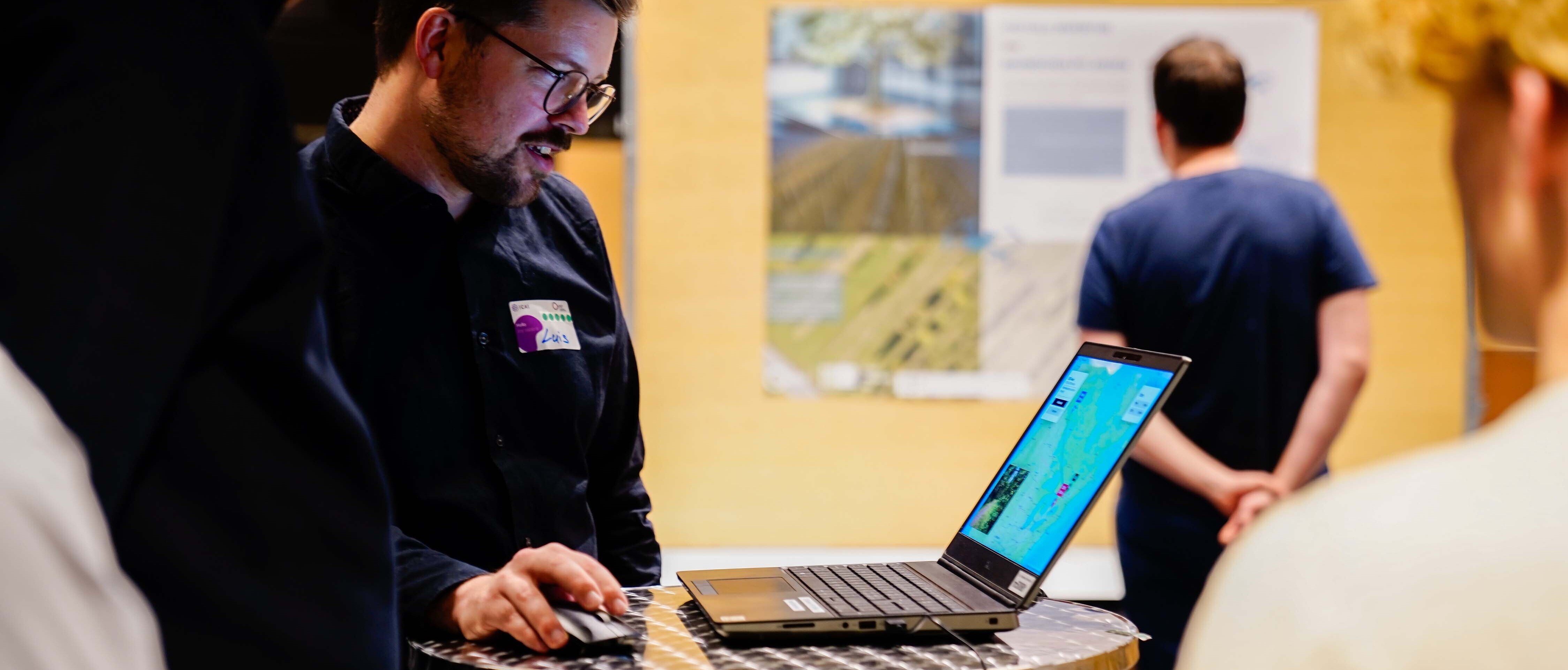 - Bild 2: Ein Besucher der «AI@OST-Tagung» testet das Siegerprojekt vor Ort.