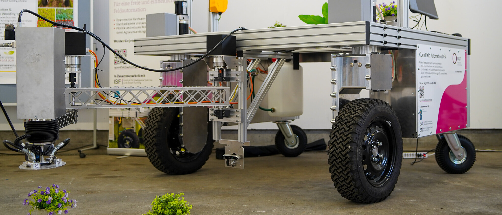 Neben dem OFA-Roboter präsentierten die Sponsoren und Partner des Innovationsforums eine breite Palette weiterer Technologien. Das Start-up Frugal Tec aus Diepoldsau stellte seine Vertical-Farming-Anlagen vor. Zudem war der autonome Mähroboter amea, der in Zusammenarbeit mit der OST entwickelt wurde, vor Ort. Das ISF zeigte unter anderem den hundeähnlichen Roboter ANYmal, mit dem aktuell experimentiert wird.