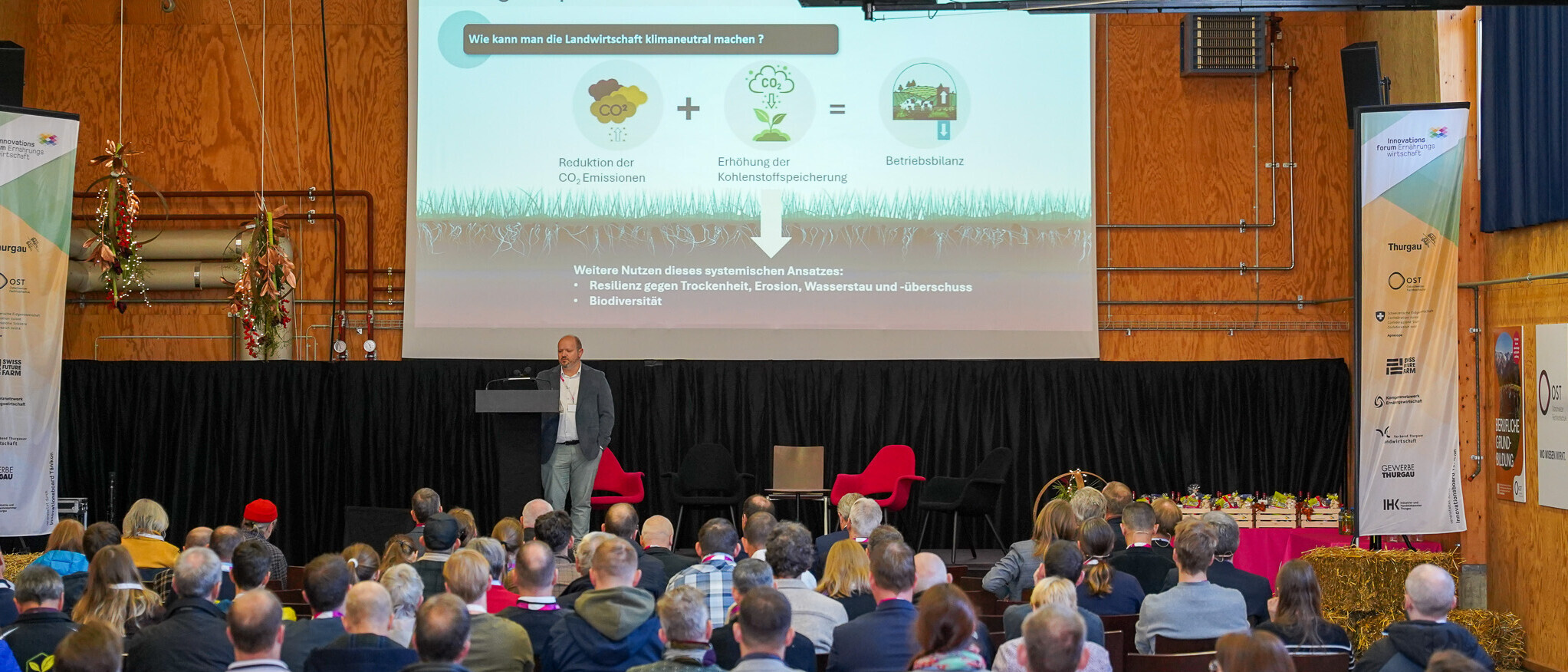 Nach fünf erfolgreichen Durchführungen durch das Innovationsboard Tänikon des Kantons Thurgau wurde das Innovationsforum Ernährungswirtschaft an das ISF Institut für Intelligente Systeme und Smart Farming der OST – Ostschweizer Fachhochschule unter der Leitung von Prof. Dr. Dejan Šeatović übergeben. Gemeinsam mit Agroscope und der Swiss Future Farm schafft das ISF seither eine Plattform für den Austausch zu praxisnahen Themen der innovativen Land- und Ernährungswirtschaft. In diesem Jahr stand das Thema «Technologie, ein Weg zur nachhaltigen Ernährungswirtschaft?!» im Fokus.