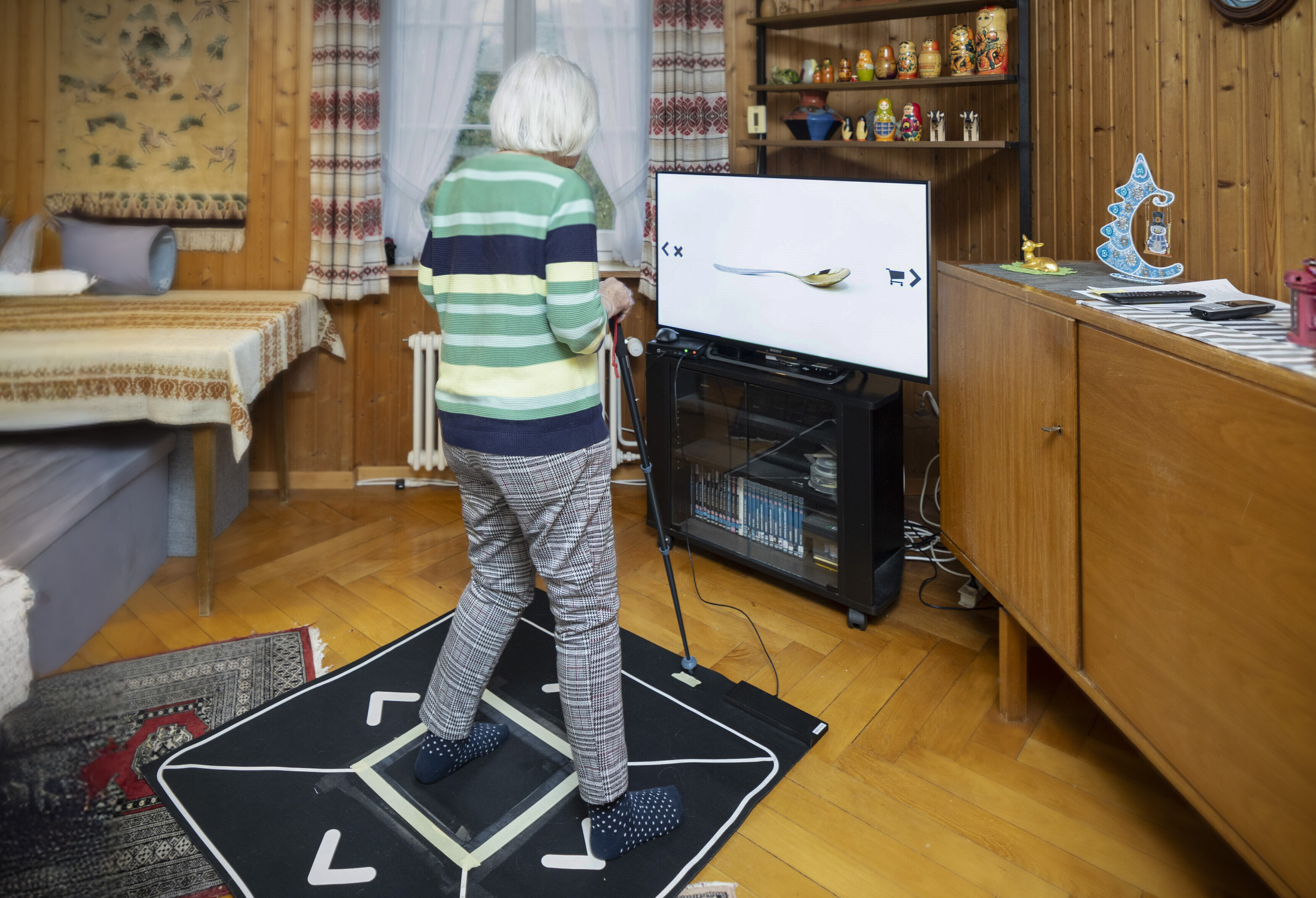 Die Studienteilnehmer/innen mussten in der Regel am Bildschirm vorgegebene Aufgaben durch eine Bewegungsabfolge mit ihren Füssen lösen. So versuchten sie sich zum Beispiel eine Einkaufsliste zu merken und entschieden dann durch einem Schritt nach rechts oder links, ob ein eingeblendetes Produkt dazugehört oder nicht. «Aufgaben wie diese trainieren gezielt kognitive Fähigkeiten, die sich bei Demenz verschlechtern, etwa die Aufmerksamkeit, das Gedächtnis oder das räumliche Vorstellungsvermögen», sagt Manser.