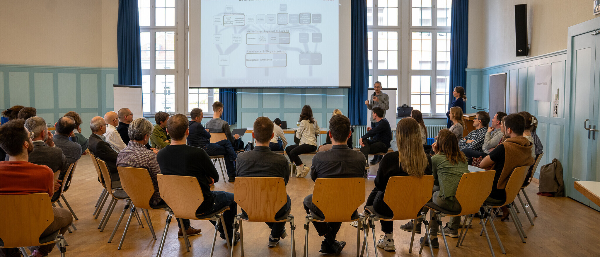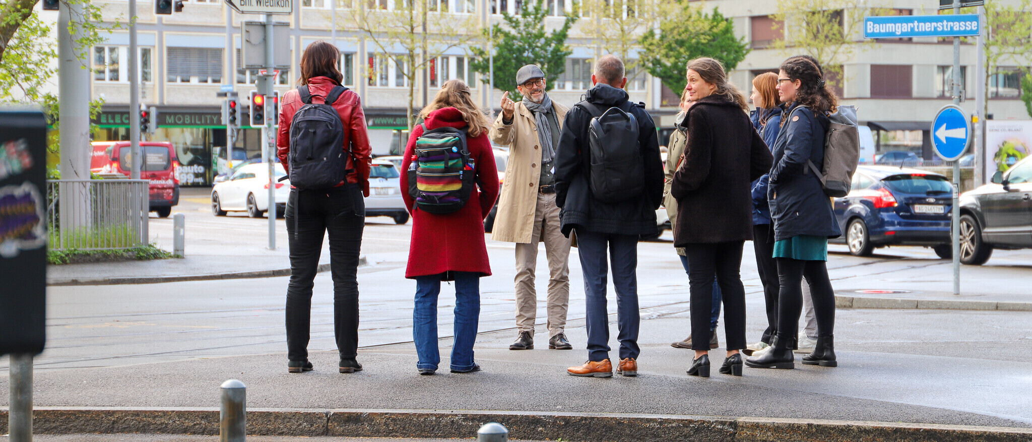 Am Nachmittag waren die Teilnehmenden zur Mitarbeit aufgefordert und konnten sich in eine interdisziplinäre Fachdebatte einbringen. In vier Foren, widmeten sie sich unter der Leitung von Fachleuten diversen Aspekten des Themas Verkehrsdrehscheiben. Diskutiert wurden die Typologisierung von Drehscheiben, die Zusammenarbeit mit den zahlrei- chen Stakeholdern bei solch komplexen Projekten oder das Zusammenspiel von Verkehrsinf- rastrukturen mit baukulturellen Schutzinteressen. Auch eine Begehung des Bahnhofs Wiedikon und die beispielhafte Besprechung, was notwendige Verbesserungen für die Bürger:innen sind stand auf dem Programm.